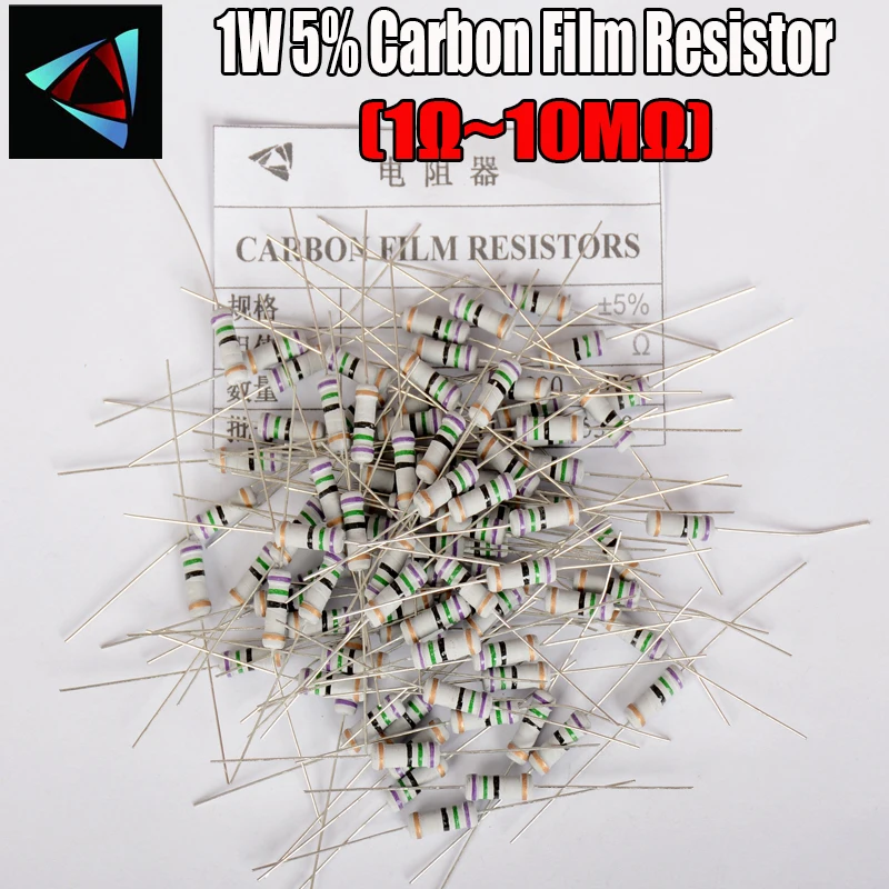 УГЛЕРОДНЫЙ пленочный резистор 1 Вт, 1R 10 м, 5%, 1K, 1,5 K, 2,2 K, 4,7 K, 10K, 22K, 47K, 100K, 100, 220, 1K5, 2K2, 4K, 7 Ом, 20 шт.