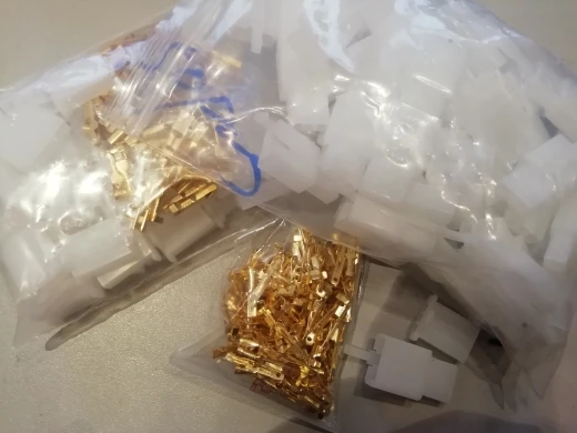 Заказ 03.12.2020, получил в Хабаровске 26.12.2020. Хорошие разъемы, удобный монтаж вдавливанием провода в клемму. Отличный вариант добавить коннекторов на старый блок питания.