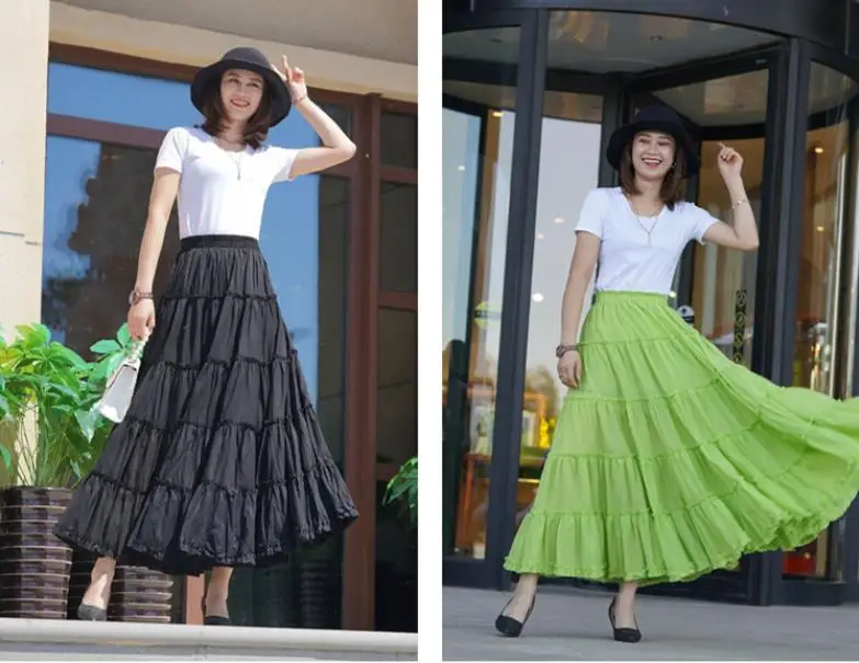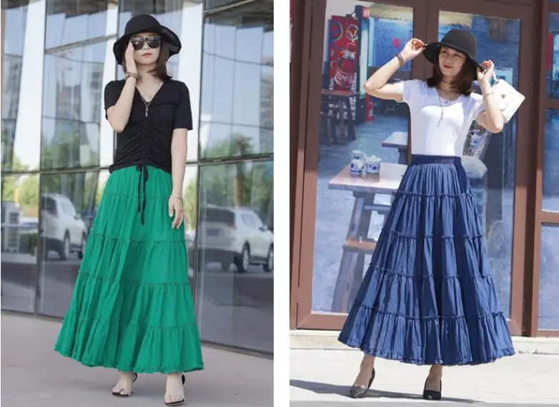 Новинка 2021, летняя женская юбка из льна и хлопка, юбки макси в стиле бохо с эластичным поясом