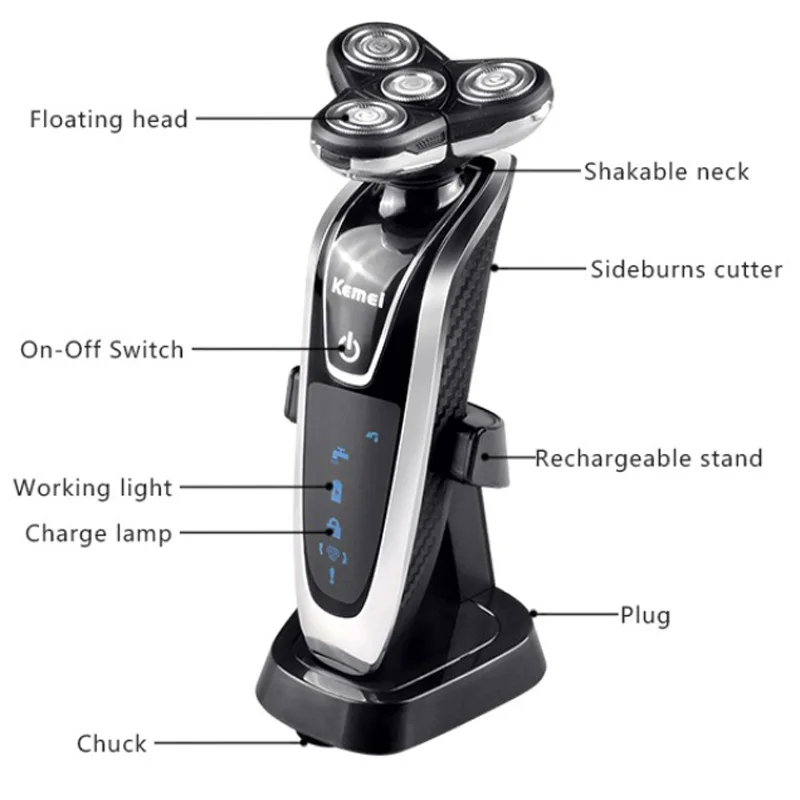 Материал: АБСВремя зарядки: 5 часовВремя использования: 40 минутМетод очистки: моющийсяВходное напряжение: 110-240 ВЧастота: 50 ГцПотребляемая мощность: 3 ВтРазмер продукта: 11,3*6 см/4,45*2,36 дюймаМодель: KM-5181