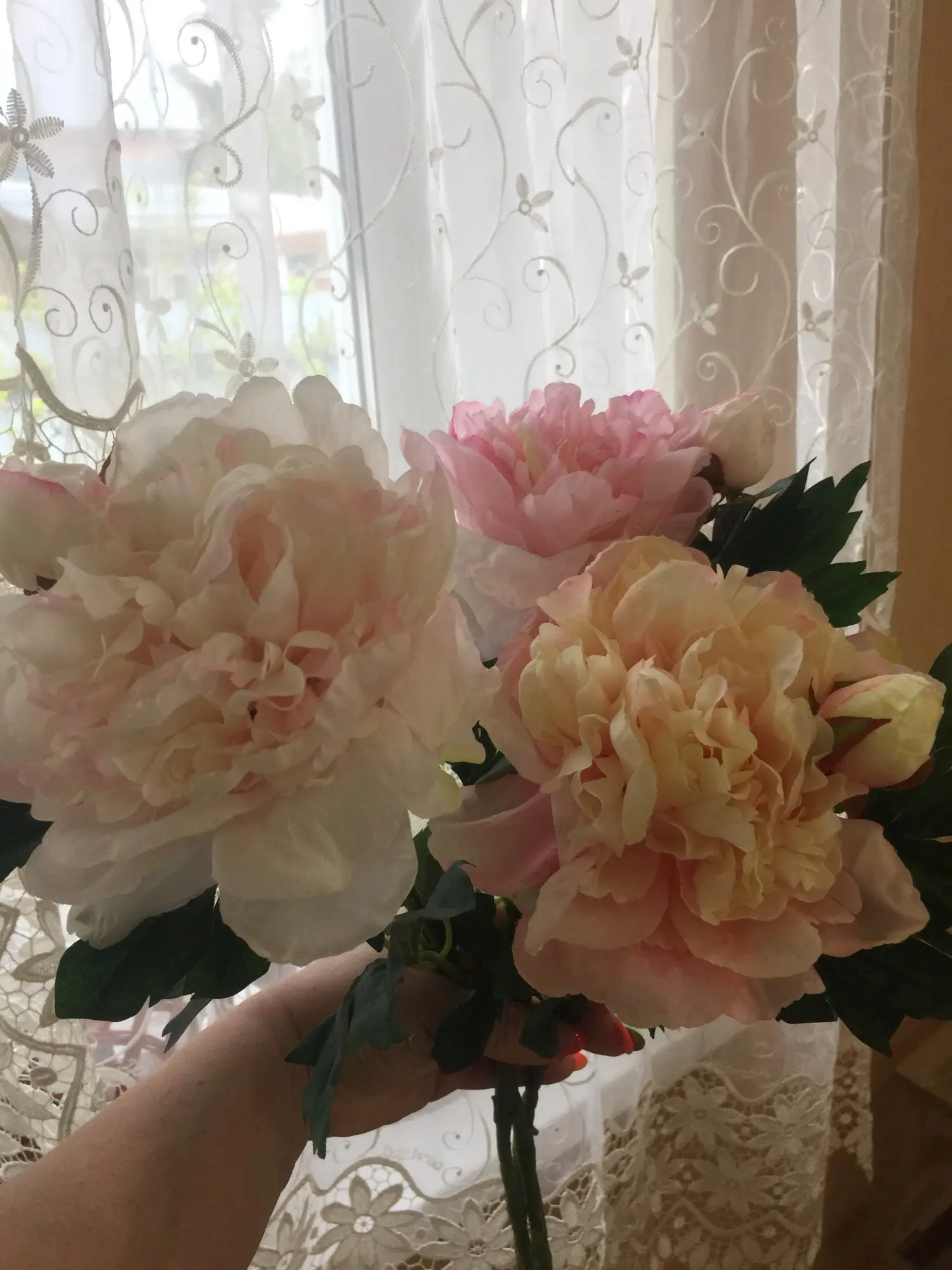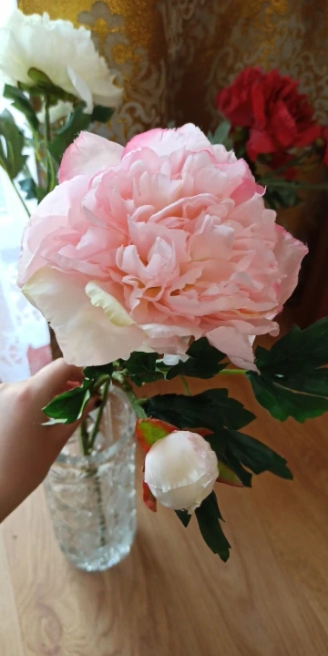 шикарный пион. листья и сам цветок очень даже настоящие!!!! продавец отправил сразу, пришёл в иркутскую область через неделю. спасибо большое