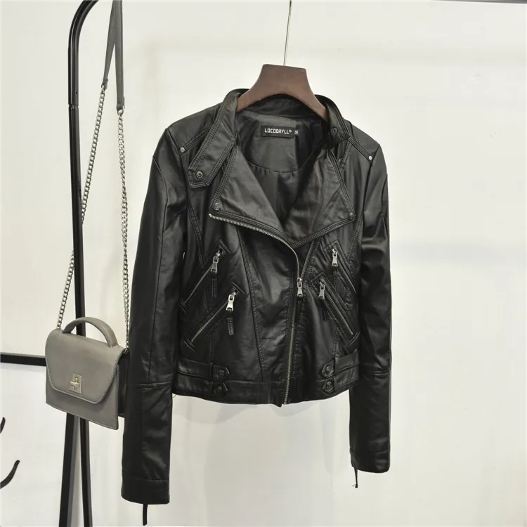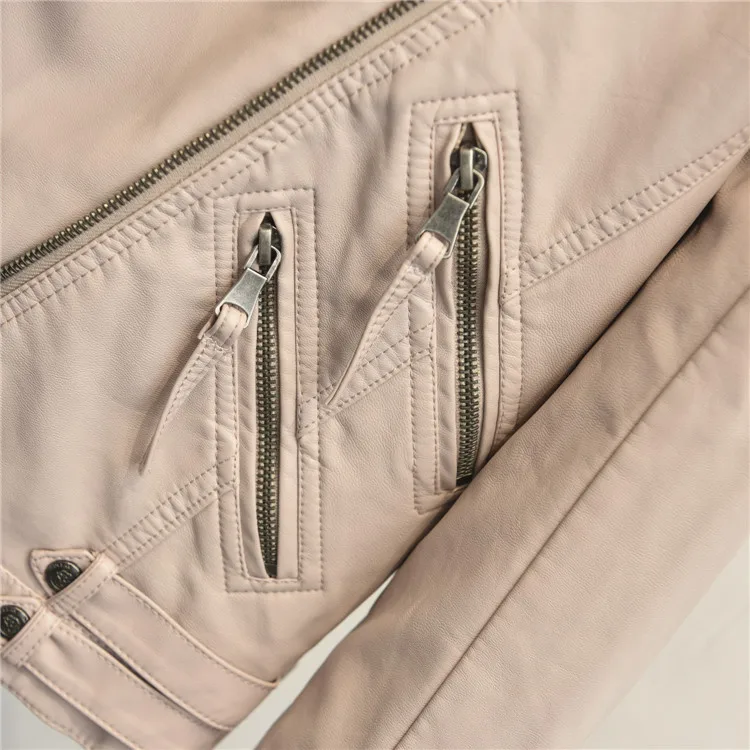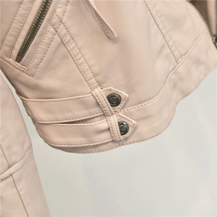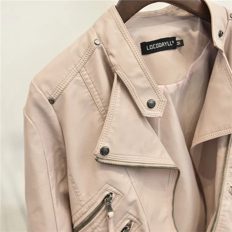 2020 Осенняя Модная брендовая качественная розовая черная кожаная куртка женская уличная стильная короткая куртка на молнии из искусственной кожи wj1196