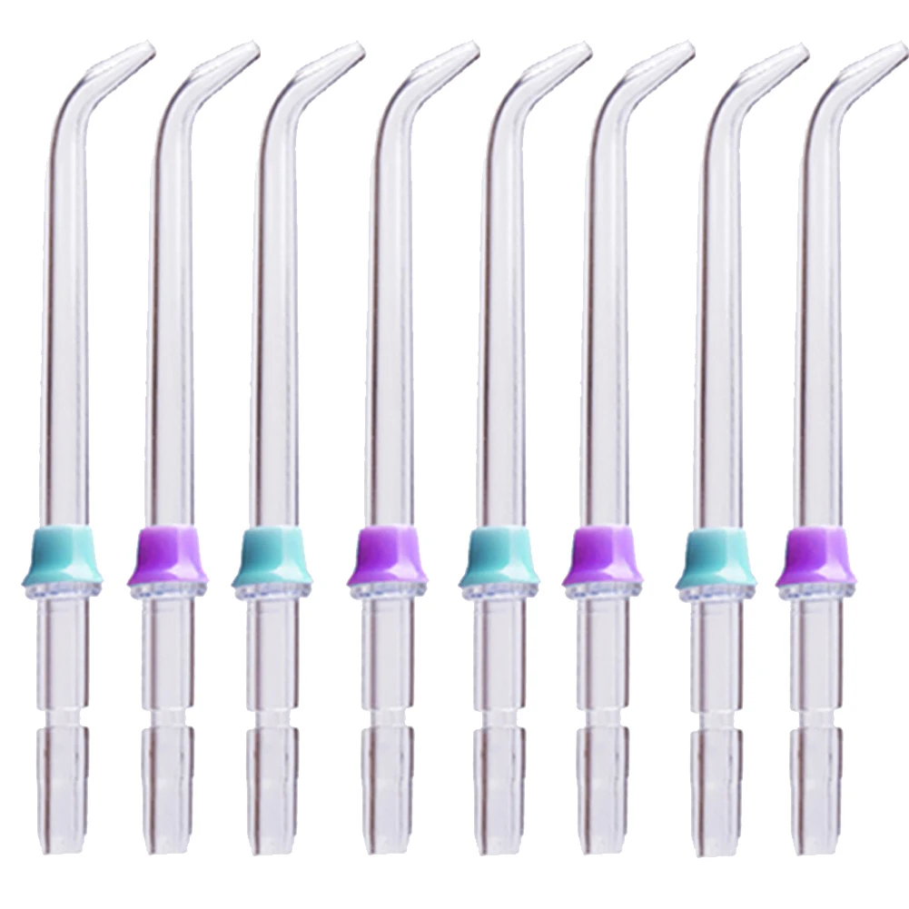 все 8 штук одного цвета! с продавцом общались,ответил сразу,просила разные цвета положить,но он сказал,что это сет и это сделать невозможно. так подходят к ирригатору хорошо,не текут из ненужных мест