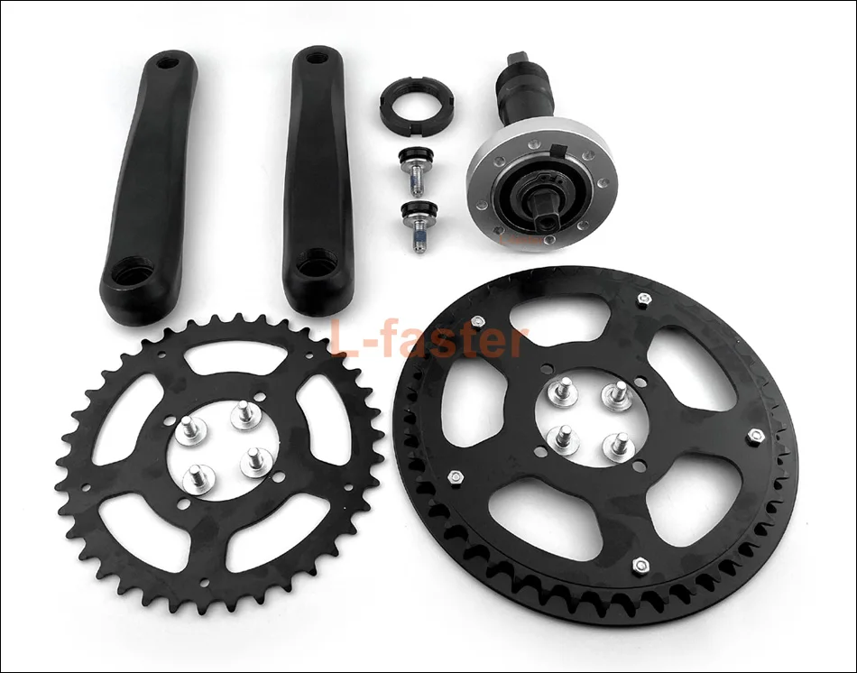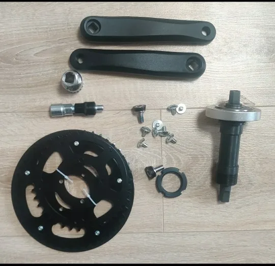 1). 1x38T цепное колесо2). 1x44T цепное колесо3). 1 x дно на заказ ось кронштейна (от 68 мм до 73 мм)4). 2 x Кривошип (левый и правый)5). 1 x инструменты (опционально)