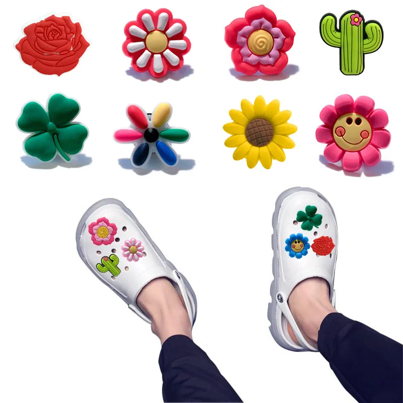 1 шт. милые маленькие цветы из ПВХ аксессуары для обуви Подсолнух четырехлистный клевер Кактус Украшения для обуви украшения подарок для детей