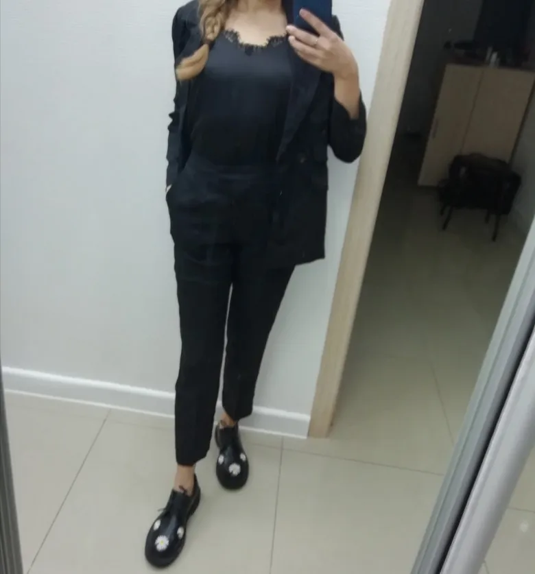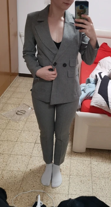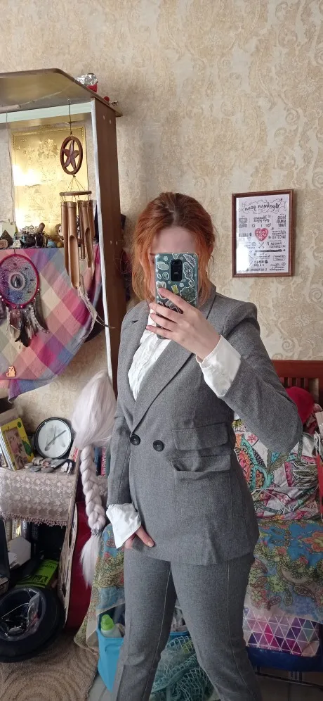 На параметры 85-60-85 рост 153 подошел размер s. Хотелось бы пиджак по приталеннее, но в принципе и так хорошо. Покупала в период распродаж где-то за 1700 р. В подарок продавец отправил резиночку для волос.