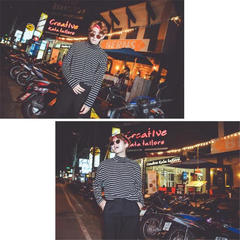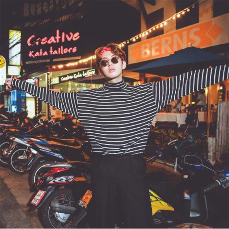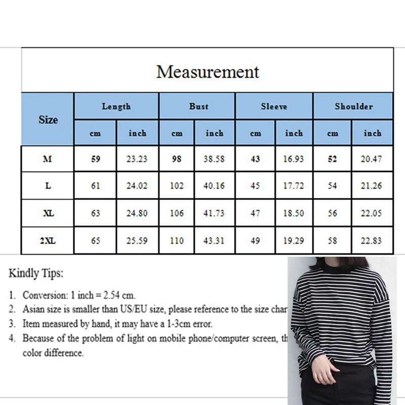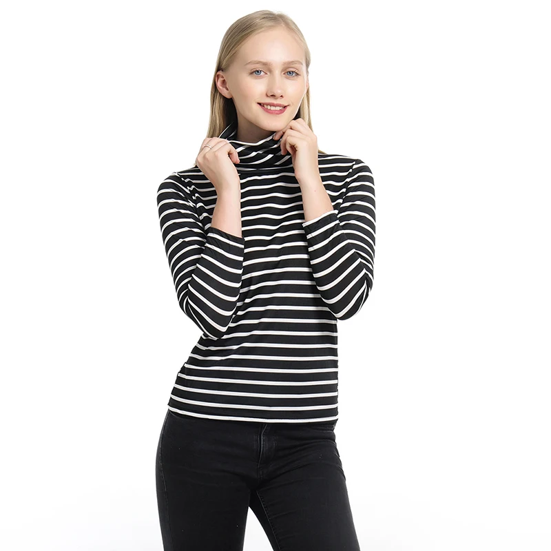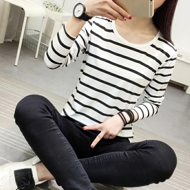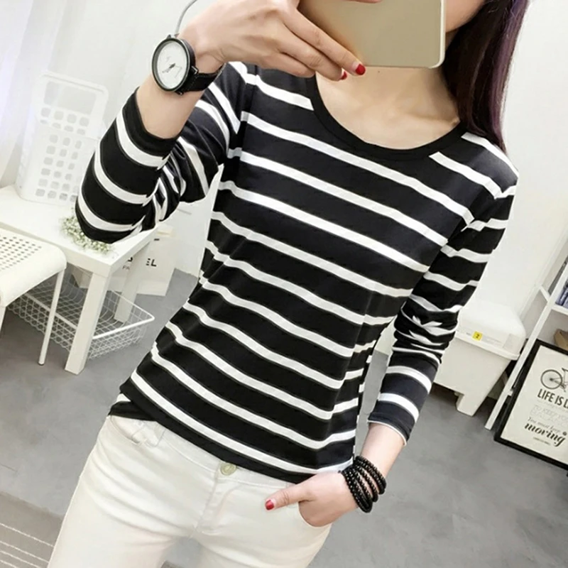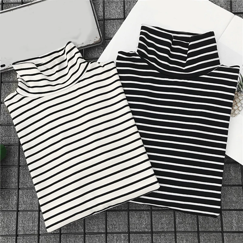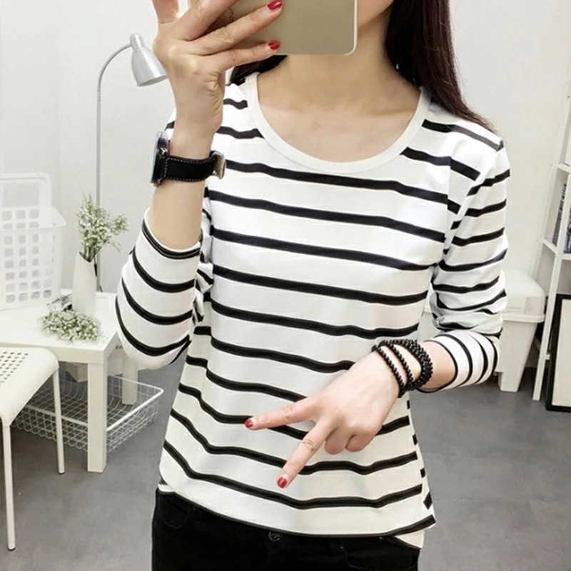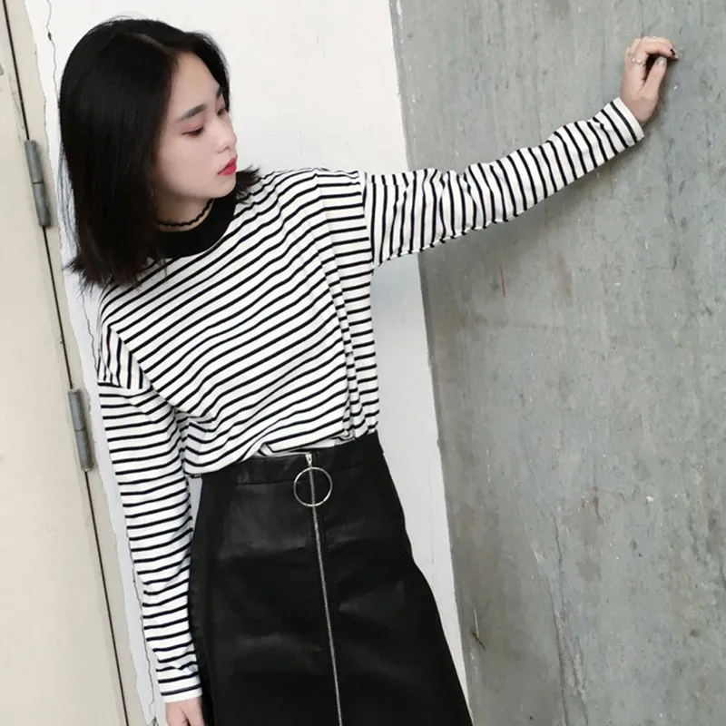 Женская футболка, новинка весны 2021, Корейская полосатая водолазка в стиле Харадзюку, женские футболки с длинным рукавом, повседневные топы