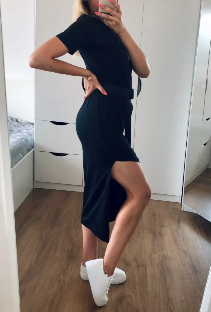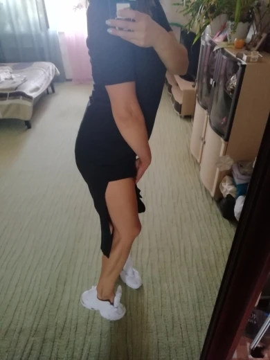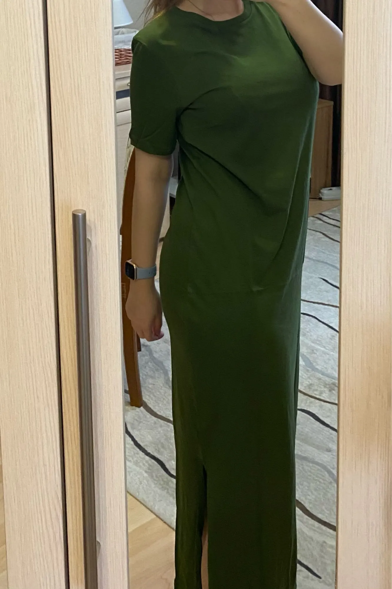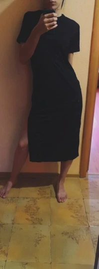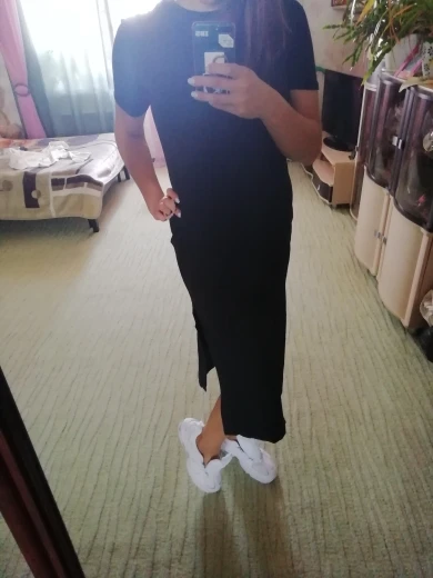 Платье комфортное, плотная хлопковая ткань, разрез с одной стороны. Можно было и поменьше размер взять, но мне хотелось посвободнее, поэтому все отлично. К покупке рекомендую, буду брать ещё!