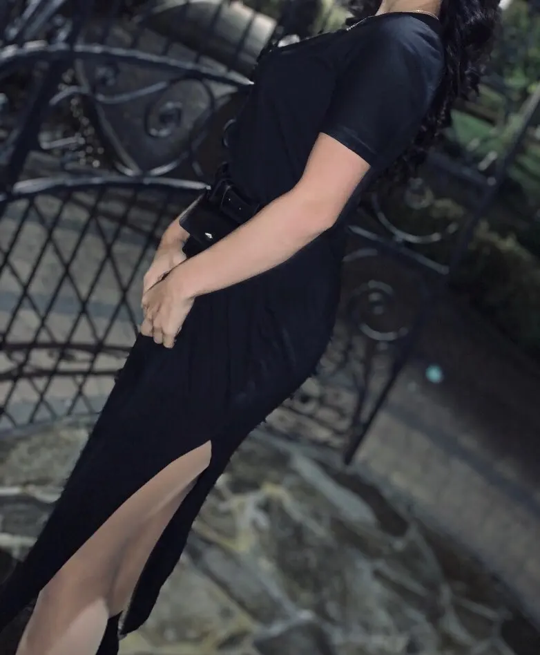 Просто обалденное платье, хоть и требует глажки при распаковке. Фасон не слишком в облипку, но и не сидит мешком. Брала при обычной L - XL. Разрез с одной стороны до примерно колена сбоку (рост 170. вдруг кому-то пригодится, ибо сама не до конца понимала где он заканчивается