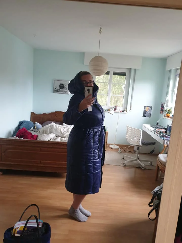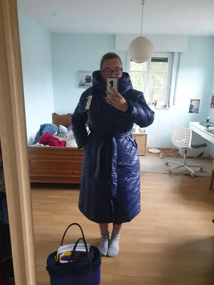 Заказом довольна. Тоненькая, лёгкая курточка. Быстрая доставка в Бельгию 3 недели. Мои параметры - рост 172см , талия 90см , грудь 110см , бёдра 130см., вес 106 кг. На больший рост не рекомендую, иначе талия будет не на месте. Брала размер максимальный 7 XL, по совету продавца, и не ошиблась. Дамы, с большими бёдрами, наврядле влезут в эту куртку .Грудь можно и 116см. Не нравится, что на замке ткань немножко топорщиться, на фото это видно. Жаль, что нет никаких кнопочек. Отдельно можно сказать о капюшоне. Он лежит очень красиво. Очень рекомендую эту курточку!