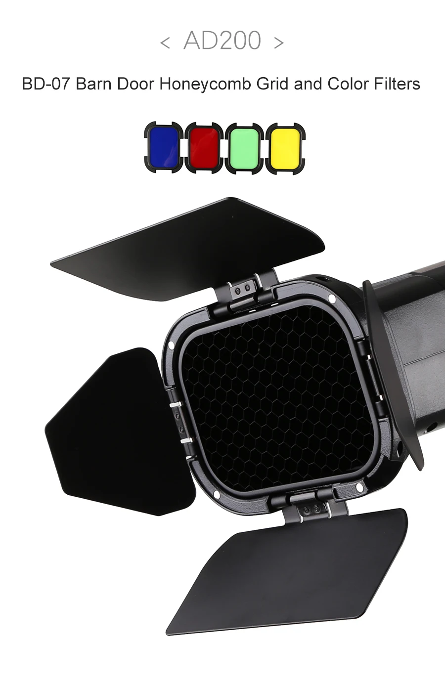 Godox BD-07 двери сарая со съемной ячеистой сеткой 4 Цвета Гелевые фильтры для Godox AD200 Карманный Speedlite