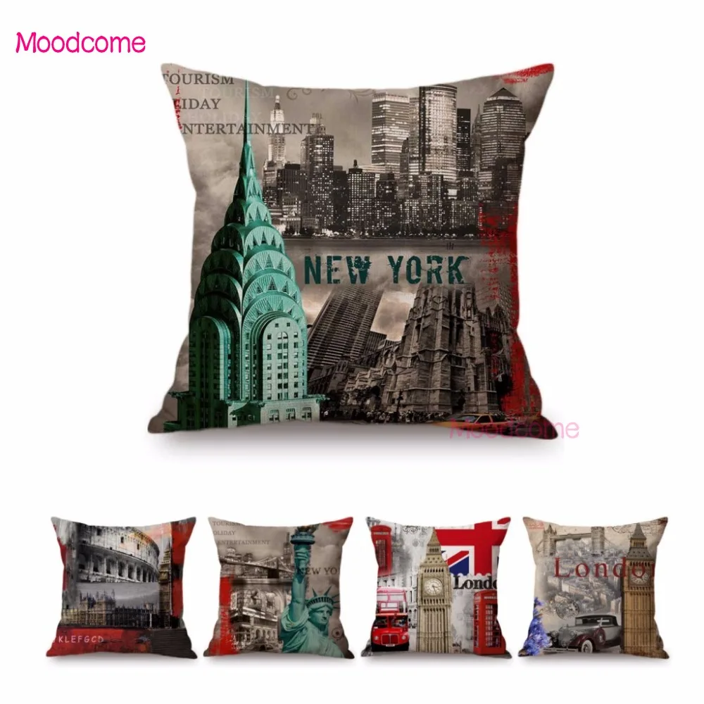 Винтажные Декоративные Чехлы на подушки для диванов Нью-Йорк Лондон Рим улица ориентиры чехлы для диванов домашний декор автомобильные подушки 45x45 см funda Cojin