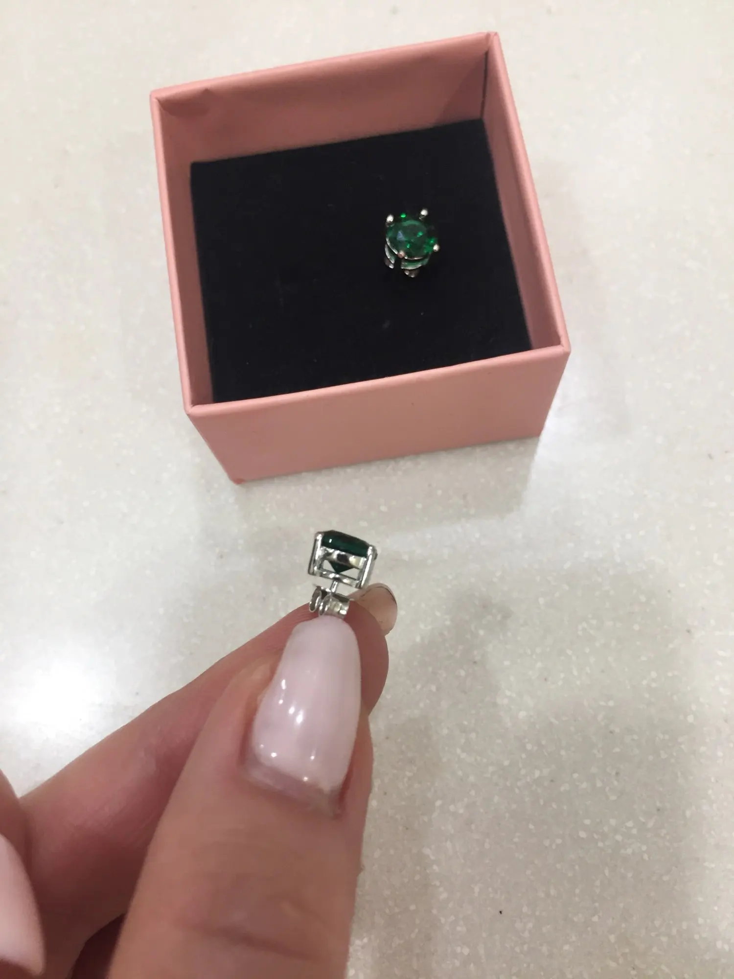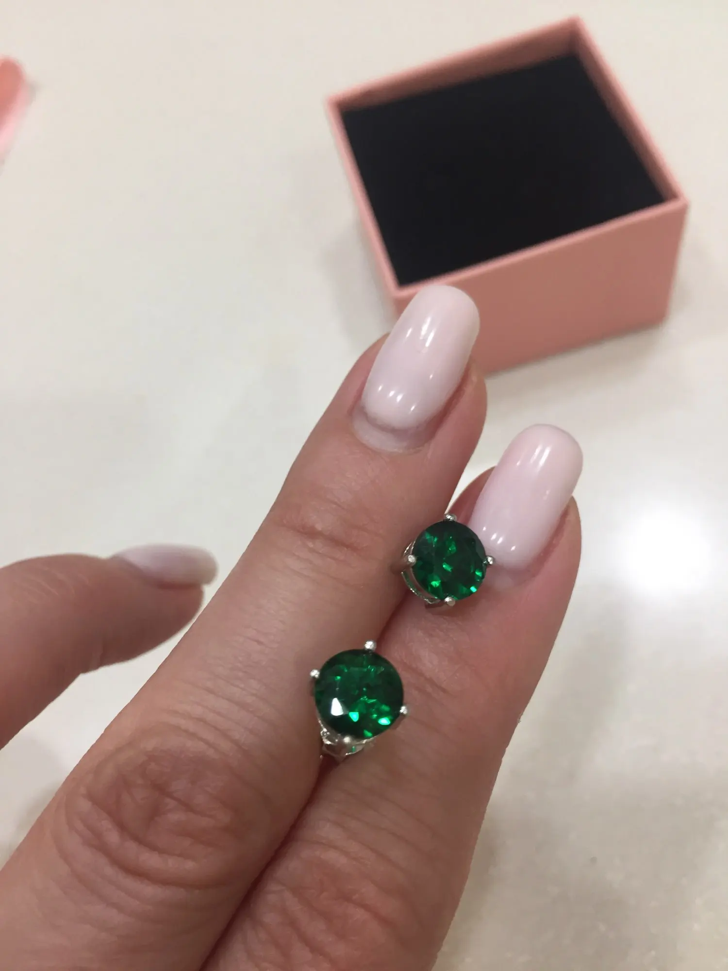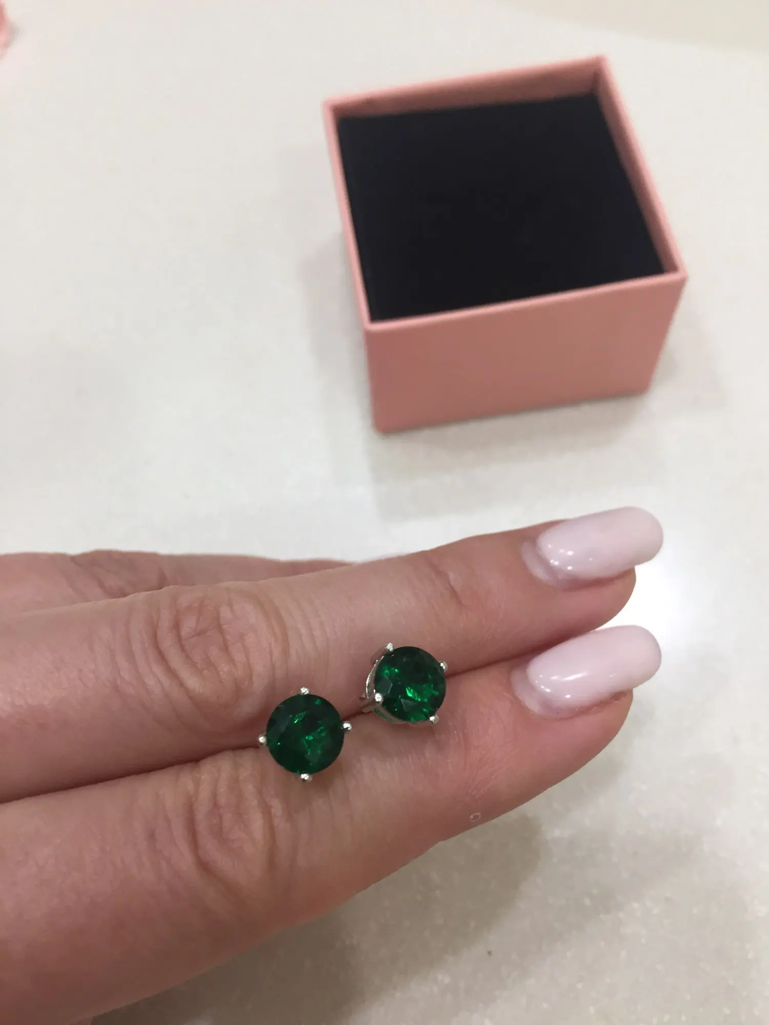 Тип камня: наноизумруд Размер / вес основного камня (прибл.): 5 мм (1 г), 6 мм (1,3 г), 7 мм (1,7 г), 8 мм (1,9 г) Чистота камня: VVS Цвет камня: зеленый Тип металла: стерлинговое серебро 925 пробы Страна происхождения камня: Россия