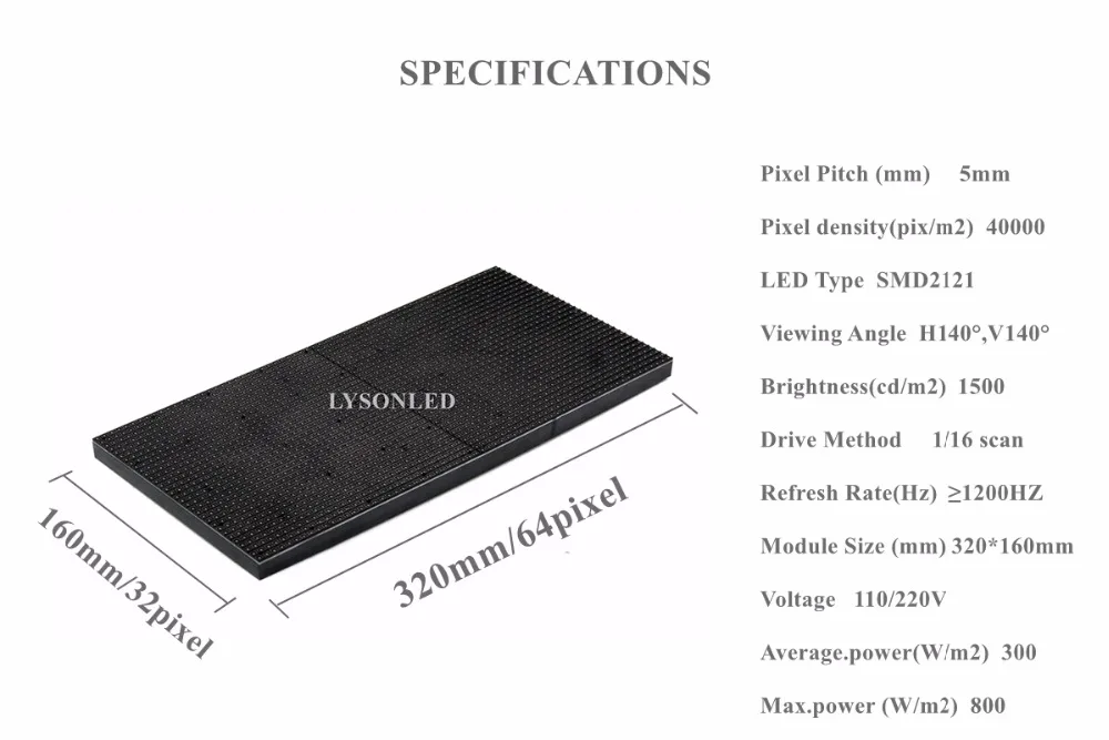 LYSON LED Video Display P5 внутренний полноцветный светодиодный модуль SMD2121, панель 116 сканирования 320*160 мм Rgb