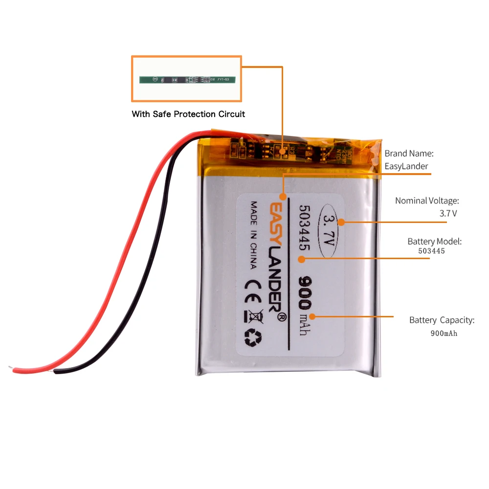 Литий-ионный перезаряжаемый аккумулятор 503445 3,7 в, полимерная литиевая батарея 3,7 В 900 мАч для mp3 mp4 mp5, рекордера телефона 053445