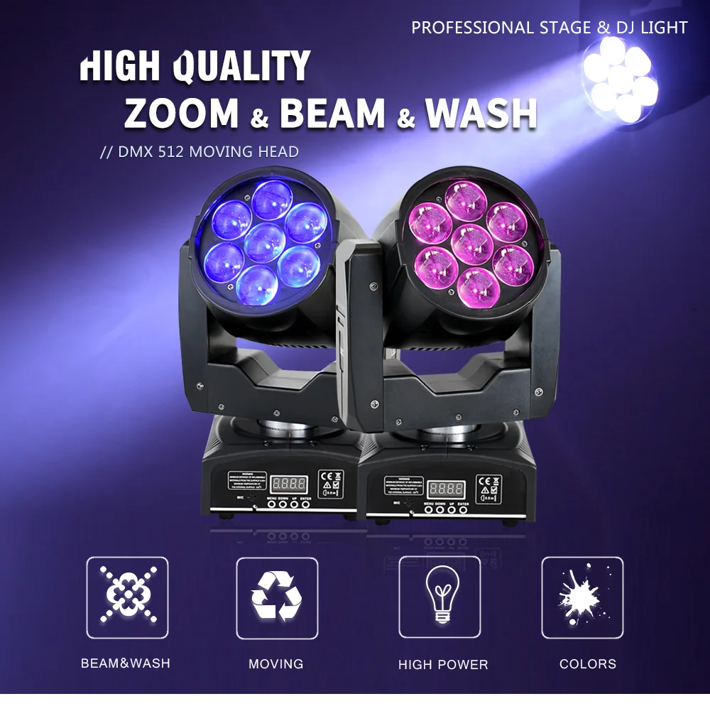 Небольшой передвижной портальный (Лира стирка светодиодный зум перемещение головы светильник 7X12W 4In1 RGBW Quad Профессиональный Dj диско Dmx сценический светильник s