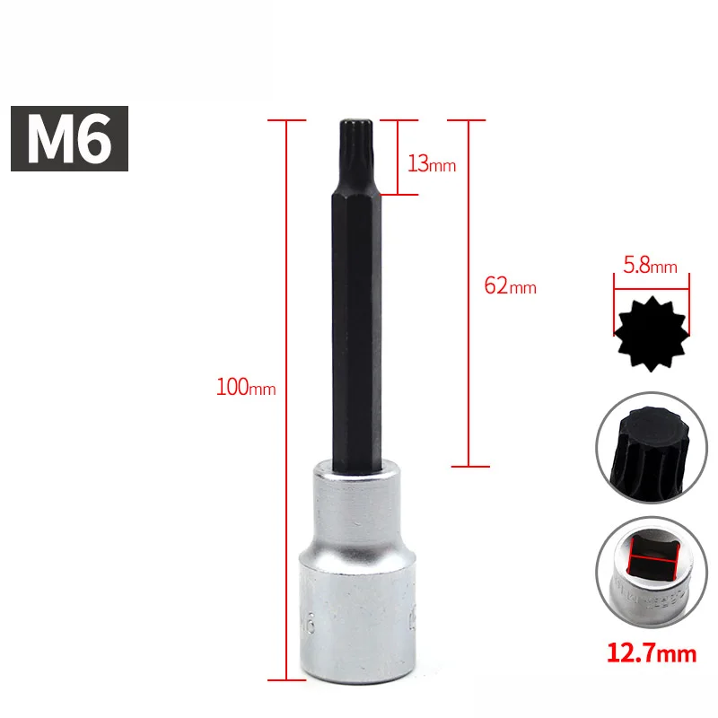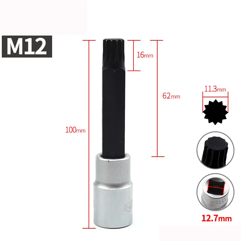 Насадка Torx для отвертки, 12 дюйма, S2, длина 100 мм, 12 точек