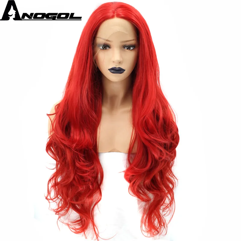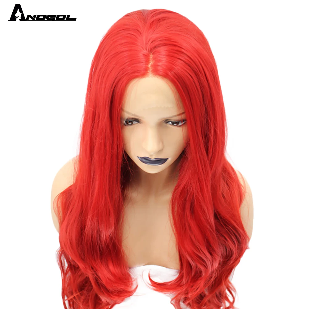 ANOGOL 28 дюймов красные длинные волнистые волосы парики термостойкие синтетические 13*1 кружевные передние волосы для голливудской женской вечеринки