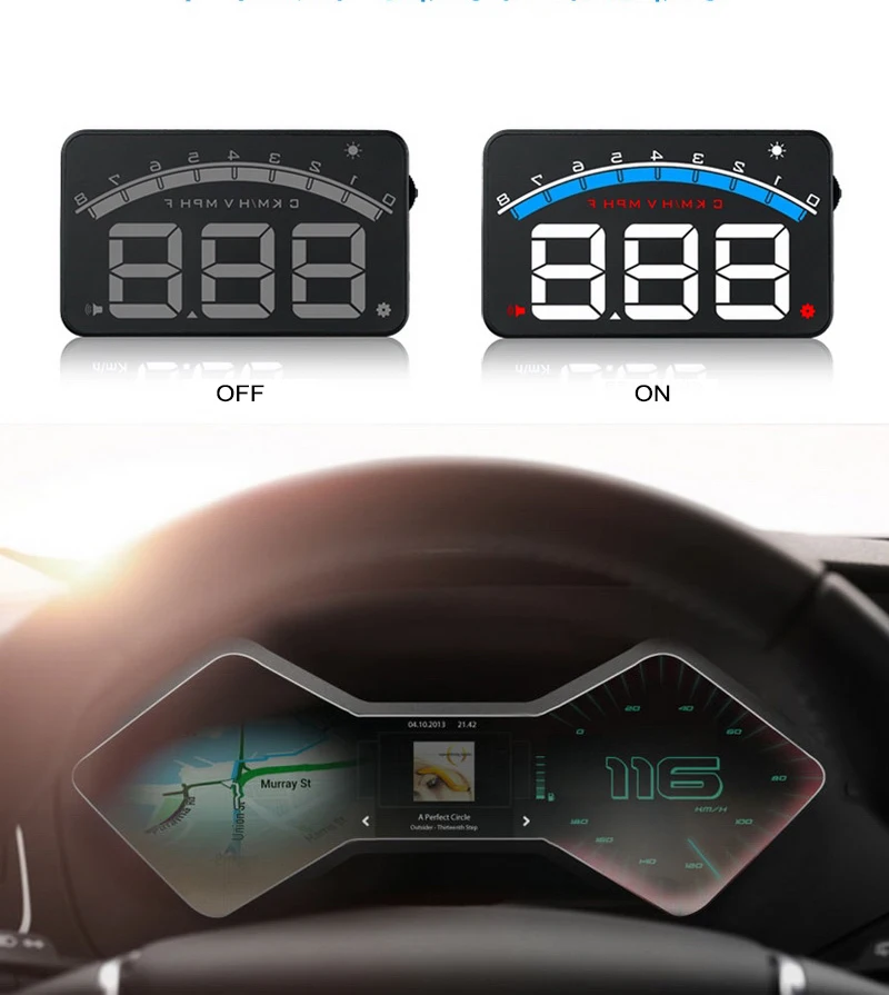 Значение спидометра автомобиля было отрегулировано на заводе автомобиля, чтобы сделать вождение безопасным. Так как HUD получает данные от ECU, таким образом, HUD Дисплей является точным значением. Расчетные данные ECU будут немного отличаться от данных приборной панели автомобиля. Если вы обнаружите, что значение дисплея HUD не такое, как у вашей приборной панели, вы можете войти в настройки меню для настройки значения HUD, тогда информация о дисплее HUD будет такой же, как у вашей приборной панели.