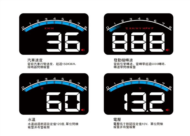 4. Единица измерения: температура воды (℃ ,℉), Блок скорости (км/ч, миль/ч), Блок Напряжения (В)