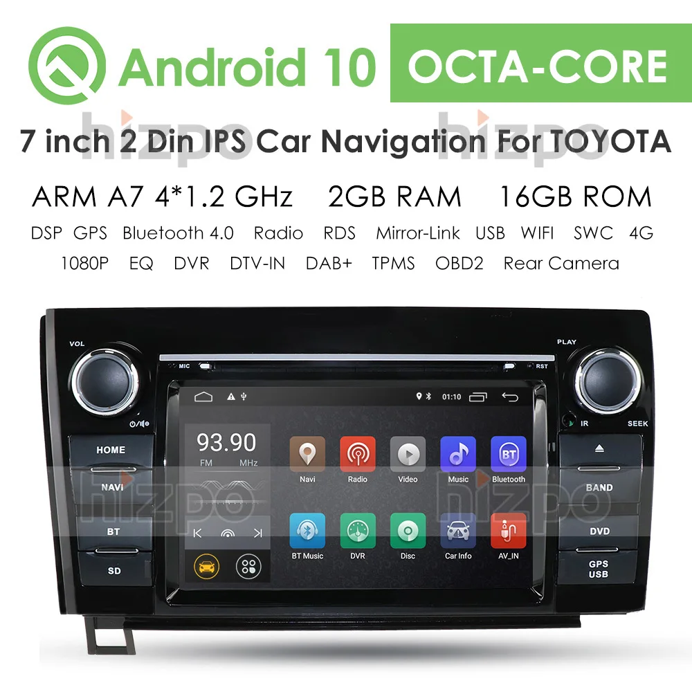 7 дюймов 2 Din HD 1024x600 4 ядра Android 10 автомобильный DVD GPS для Toyota Tundra 2008-2013 стерео радио 4G Wi-Fi OBD DVR DAB +