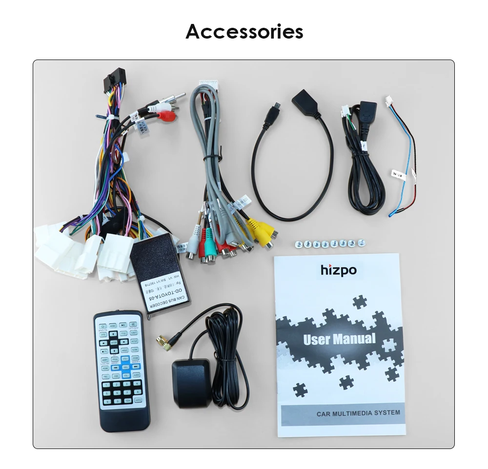 Стерео поставляется с аксессуарами, как показано на изображении аксессуаров, если вам нужен другой провод или аксессуары для установки, вам нужно купить отдельно.