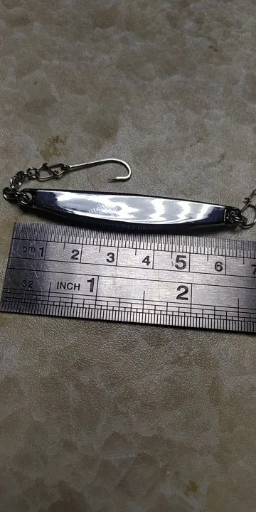 Блесна выше всяких похвал. Качество исполнения, фурнитура, упаковка на высоте. Крючок для окуня: длина 2см, цевьё 7мм. Если верить упаковке, то owner. При желании можно на тройник с каплей поменять, но я бы просто бусинку или кембрик цветной на крючок надел. В описании длинна указана самого тела блесны без цепочки. У нас за такие деньги и близко ничего подобного не купишь.