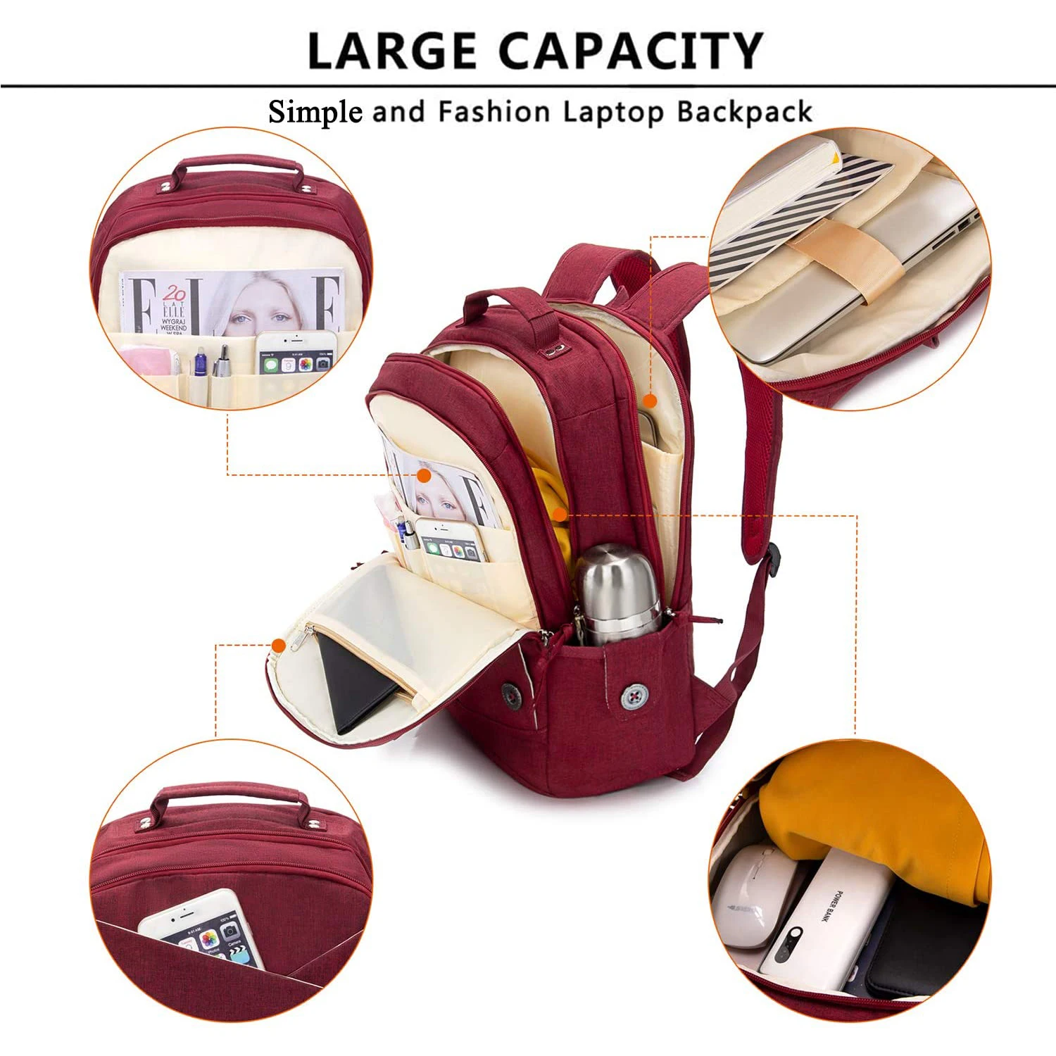 KINGSLONG 15,6 17-дюймовый рюкзак для ноутбука, деловая Противоугонная тонкая прочная книжная сумка, водонепроницаемая школьная сумка красного цвета