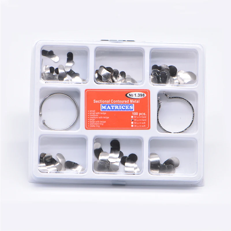 Зубные матрицы, контурные металлические сечения, 100 шт.компл., No.1.398 lmws 2 кольца, стоматологическое лабораторное оборудование, инструменты для замены зубов