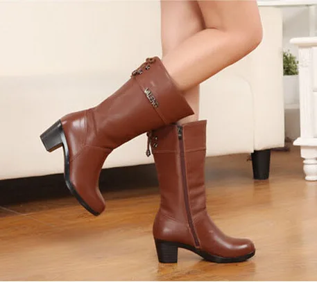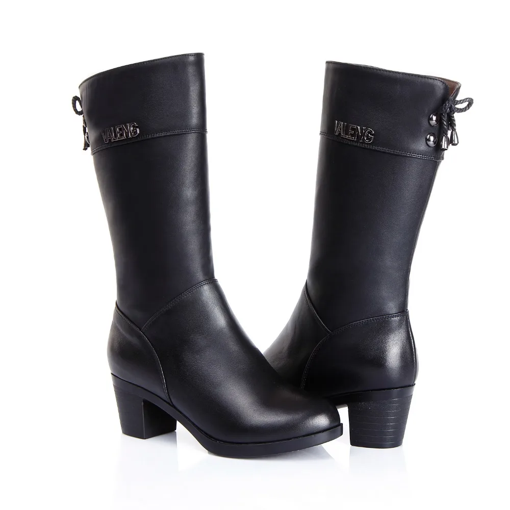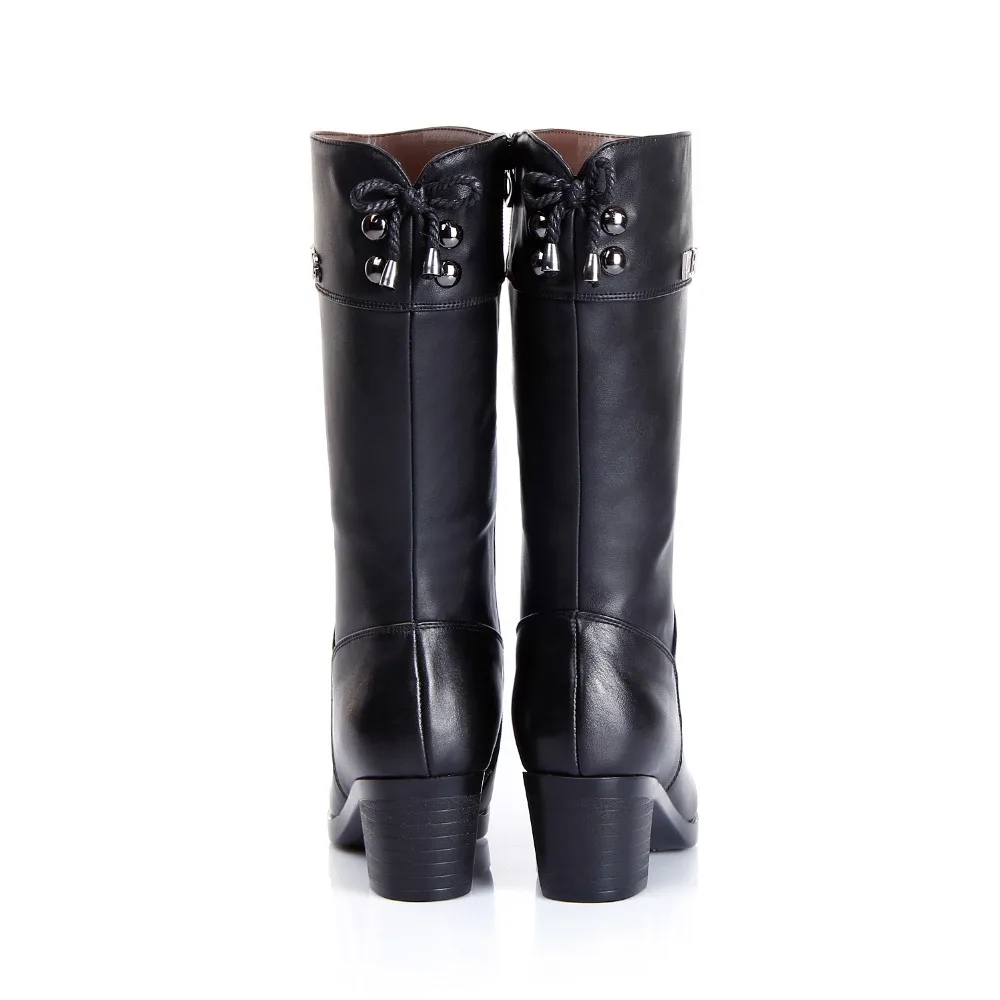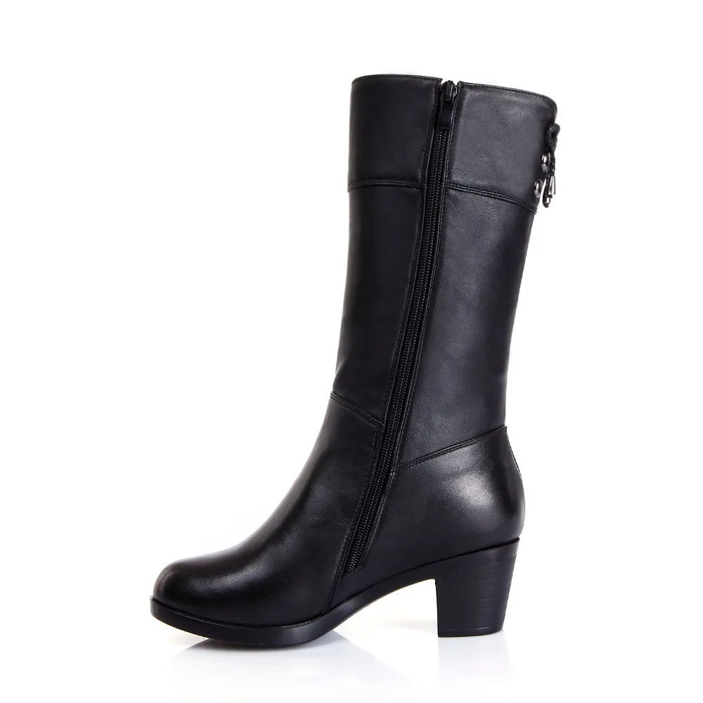 Женские зимние сапоги из натуральной кожи, с мехом внутри