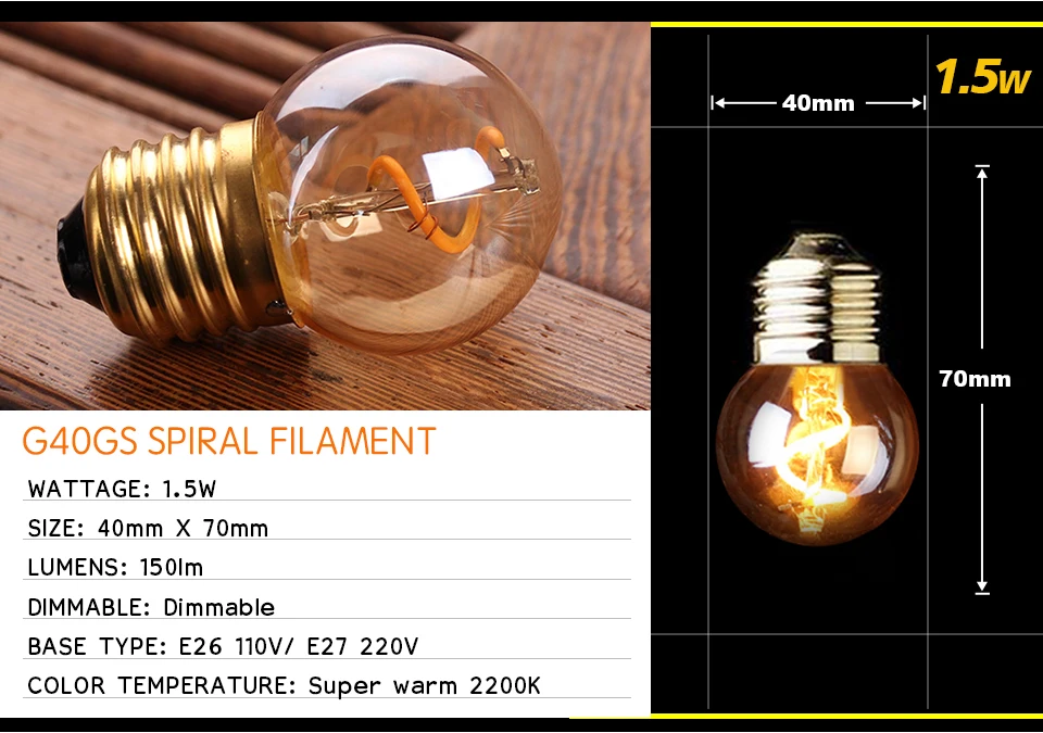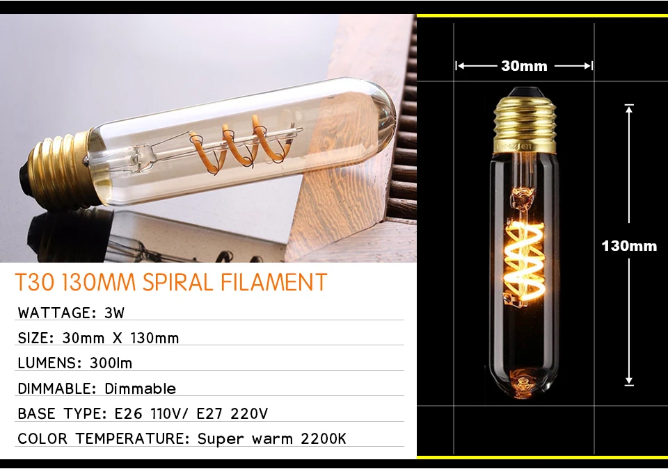 Страна: NL Emitting Color: ST64 2200K Color: Spiral Gold Tint Wattage: 3W E27 220V Support Dimmer: Yes Доставка: Standard Shipping 19.06.2021