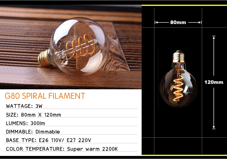 Страна: FR Emitting Color: G80 2200K Wattage: 3W E27 220V Support Dimmer: Yes Color: Spiral Gold Tint Доставка: Seller's Shipping Method 20.01.2021