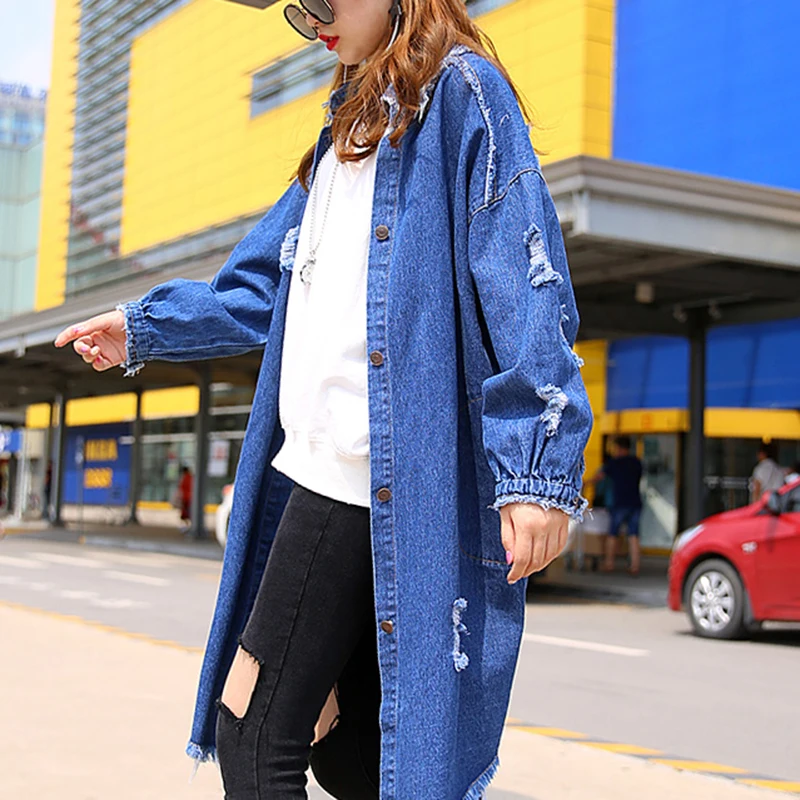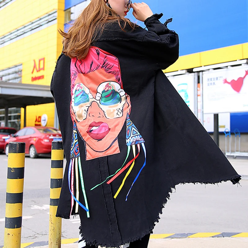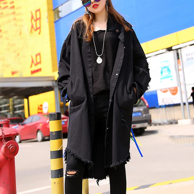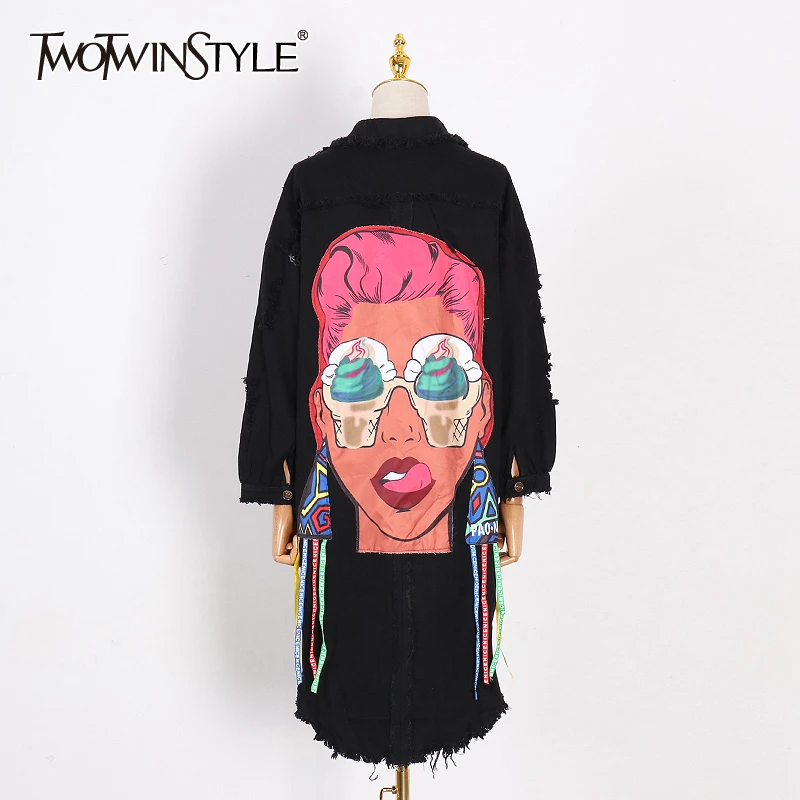 Twotwinstyle 2017 Denim Hole печать женственный Тренч Женский осень кардиган Кружева до Для женщин Ветровка Длинные Рыхлителя одежда