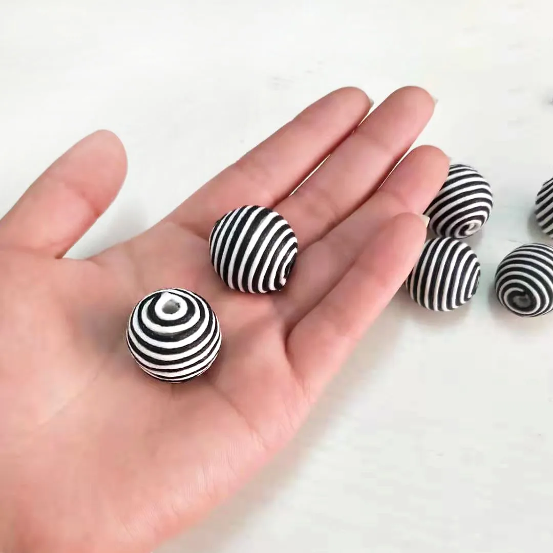Размер бисера: 20 ммС полосатым хлопковым покрытием размером около 22 ммУпаковка из 12 бусин с полосатым хлопковым покрытием размером около 22 мм.