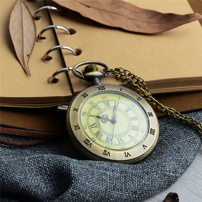 Часы с римскими цифрами, винтажные карманные часы с цепочкой и циферблатом для мужчин и женщин