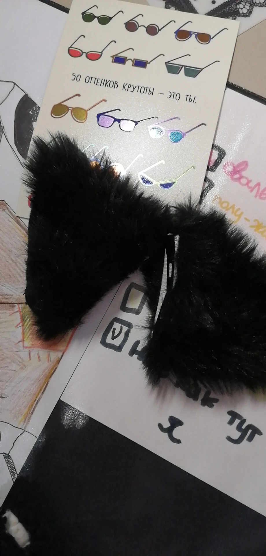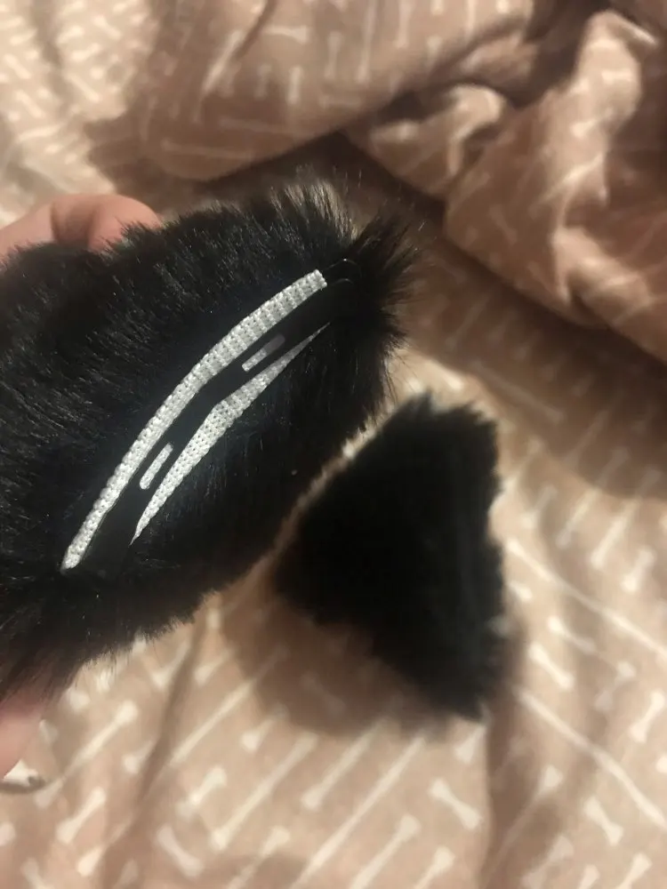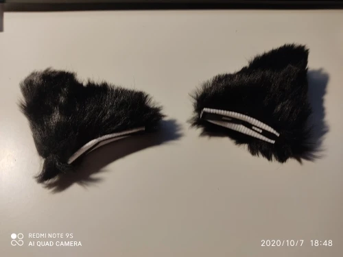 Классные уши! Мягкие, приятные, красиво смотрятся. Сначала заказала серые, но потом передумала, написала продавцу и он без проблем заменил их на чёрные. Единственный минус — не очень удобно расположены заколки: надо изловчиться чтобы прикрепить красиво и крепко