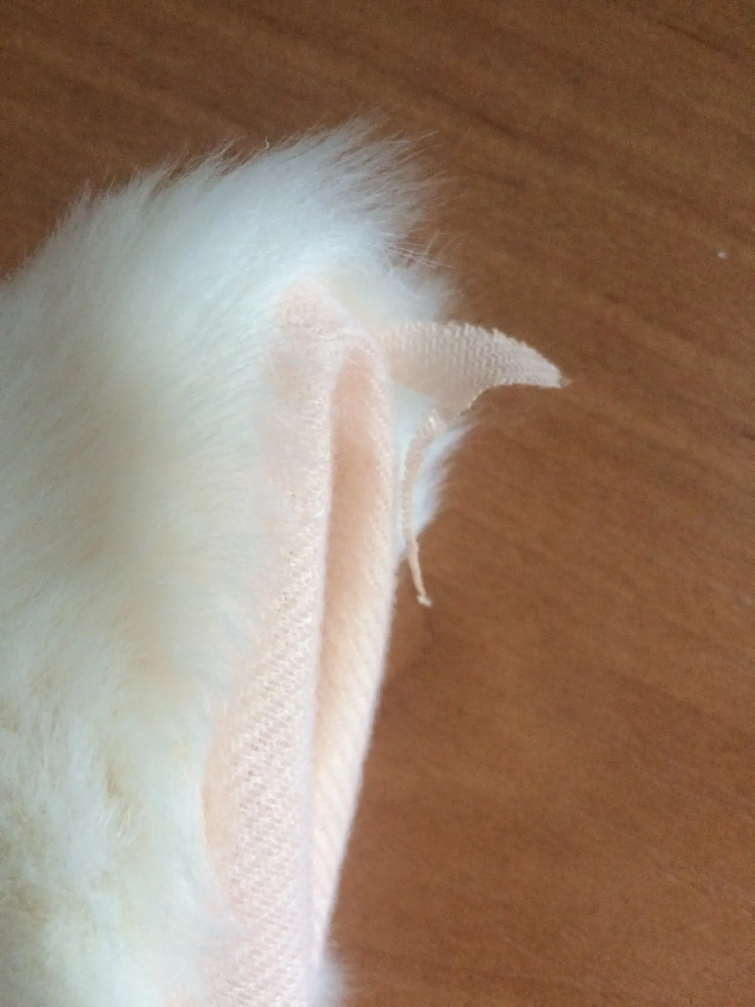 В Казахстан дошло за месяц и 3 дня все хорошо ушки на заколке (там так сделано, что можно свою заколку вставить) нитки не торчат уши пушистые поддаются, тоесть можно форму придать