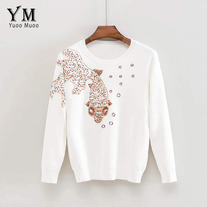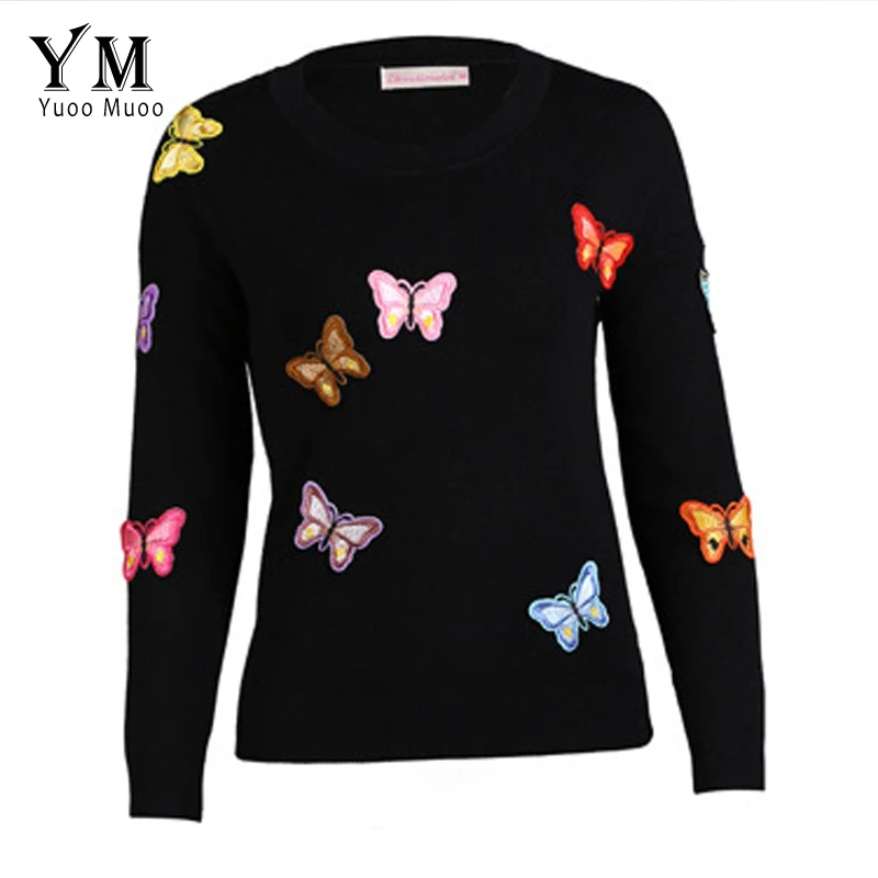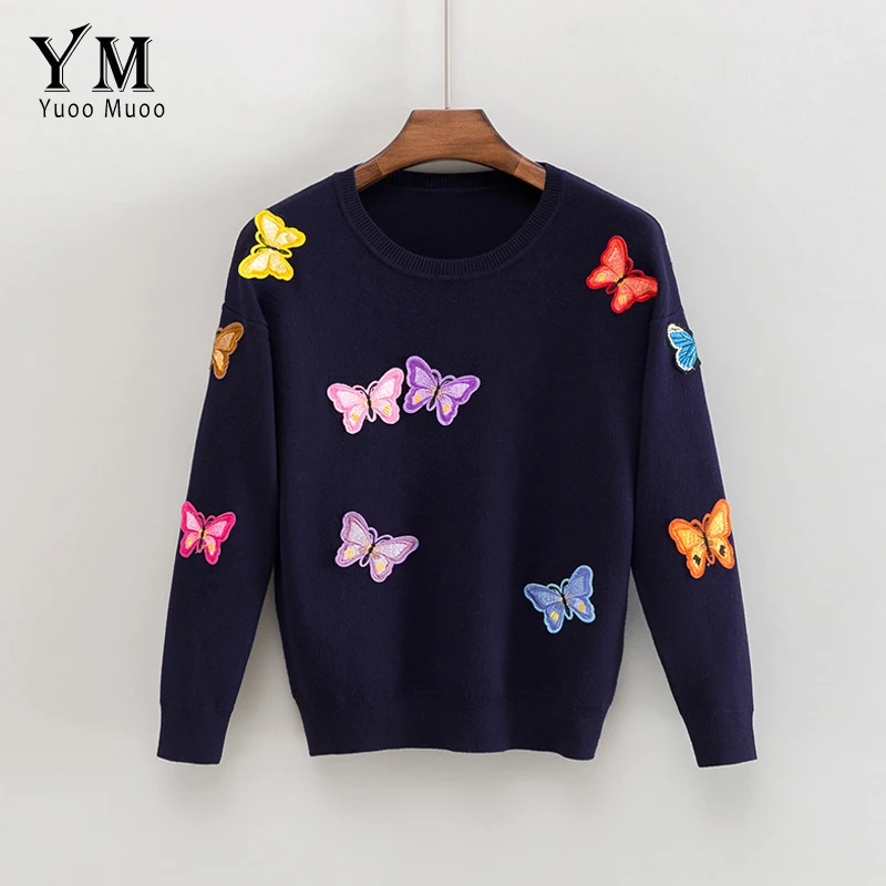 Новый высококачественный свитер YuooMuoo, женский роскошный пуловер с бабочками, Европейский стиль, осенне-зимний вязаный свитер, Теплые повседневные топы