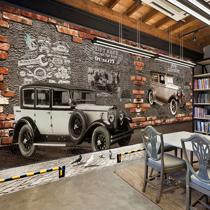 3D обои на заказ, Ретро Винтаж, автомобиль, кирпич, настенная живопись, кафе, ресторан, KTV, бар, фон, обои, Декор, Papel De Parede