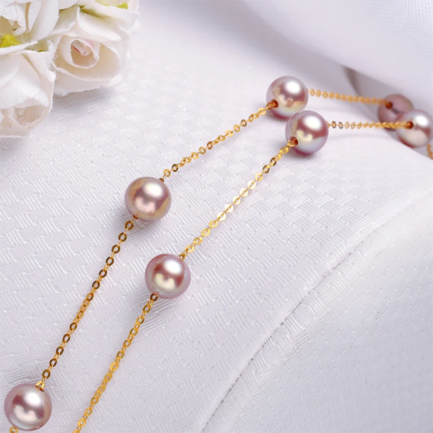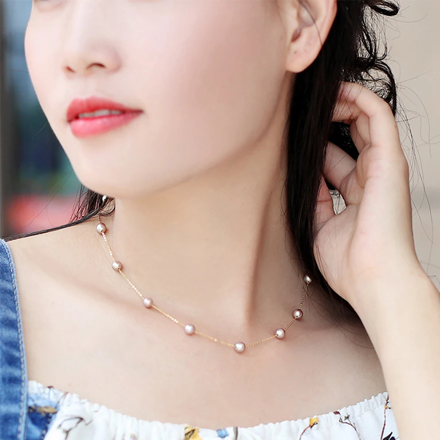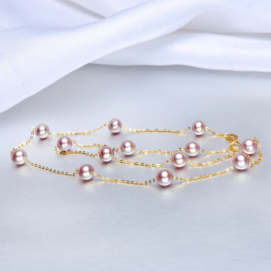Женское жемчужное ожерелье YS, фиолетовое жемчужное ожерелье с натуральным культивированным жемчугом, цепочка из 18-каратного золота, свадебные украшения, 5,5-6 мм