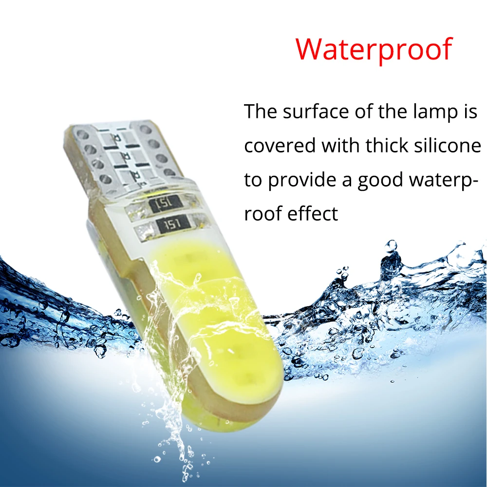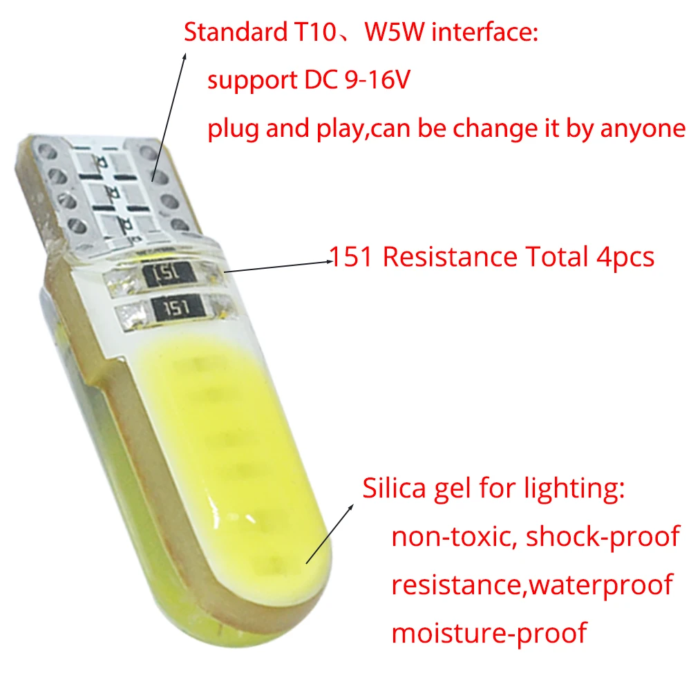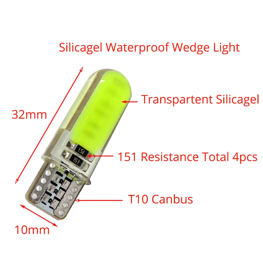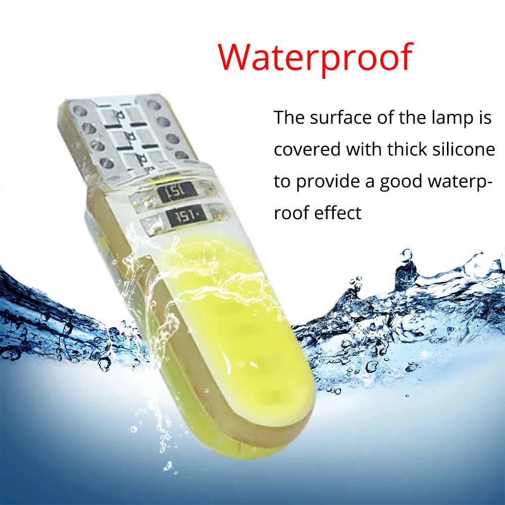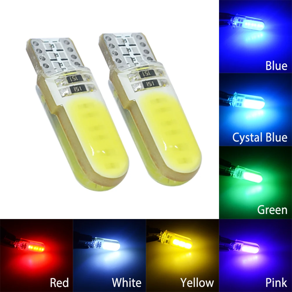 Автомобисветодиодный светодиодные лампы T10 WY5W W5W COB, силиконовые лампы с клиновидным цоколем для стоп-сигналов, Внутренние светодиодные лампы для чтения, Купольные лампы для парковки, DC 12 В, 1 шт.