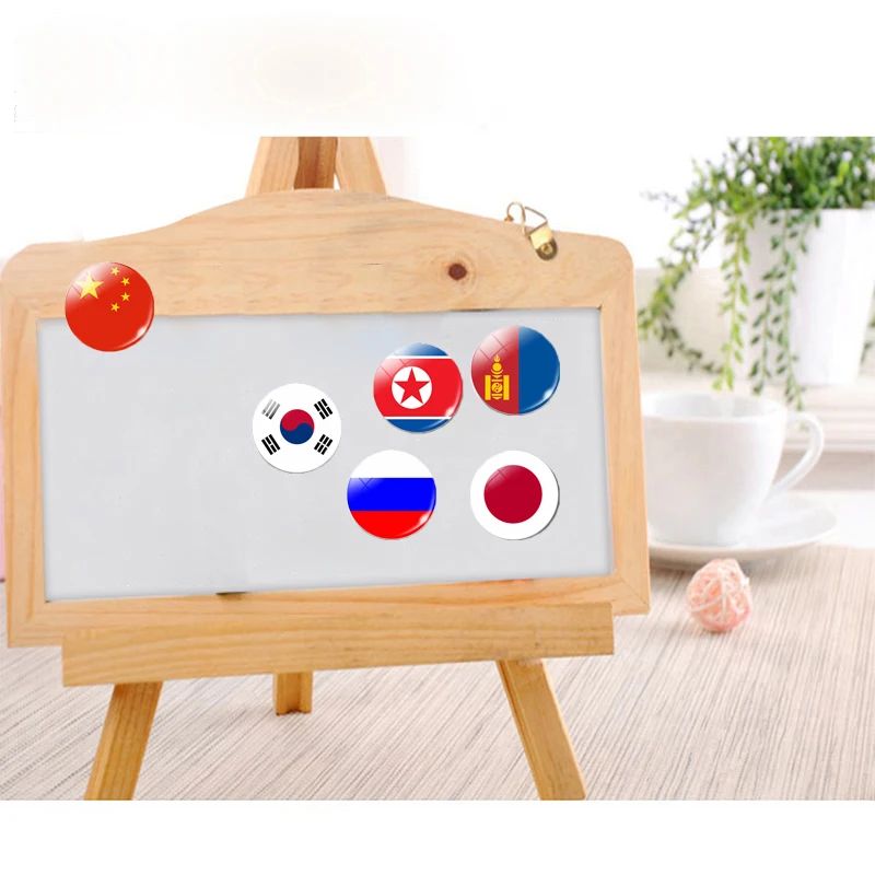 Магнит на холодильник с национальным флагом, 30 мм, Восточная и Северная Азия, Китайская Народная Республика, Япония, Северная Корея, Южная Корея, Монголия, Россия