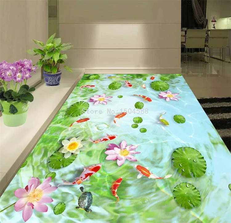 Настенные 3D-обои на заказ, наклейка на пол в виде лотоса, пруда, рыбьей плитки, ПВХ водонепроницаемая самоклеящаяся пленка для ванной и гостиной