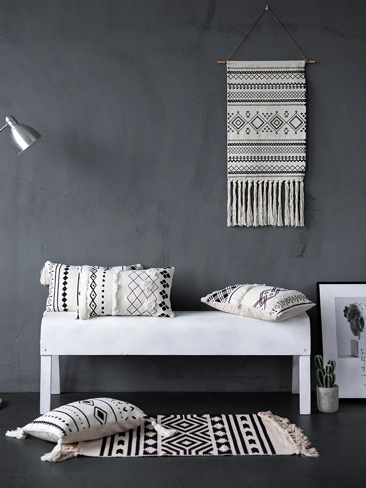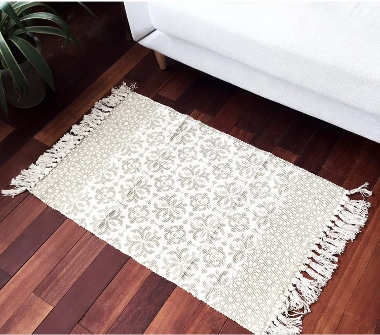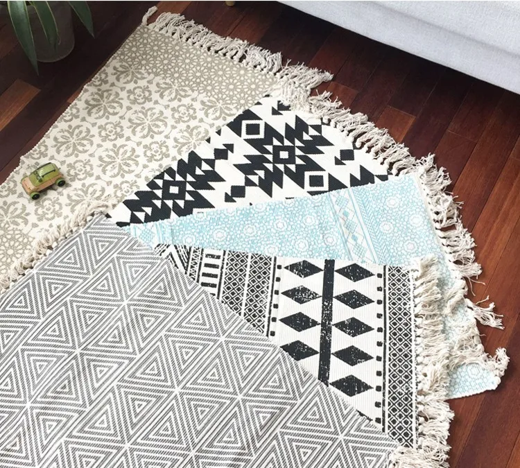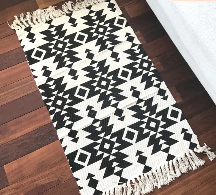 Многофункциональный тканый коврик в скандинавском стиле с геометрическим узором из хлопка, декоративный прикроватный ковер, дверной коврик, распродажа