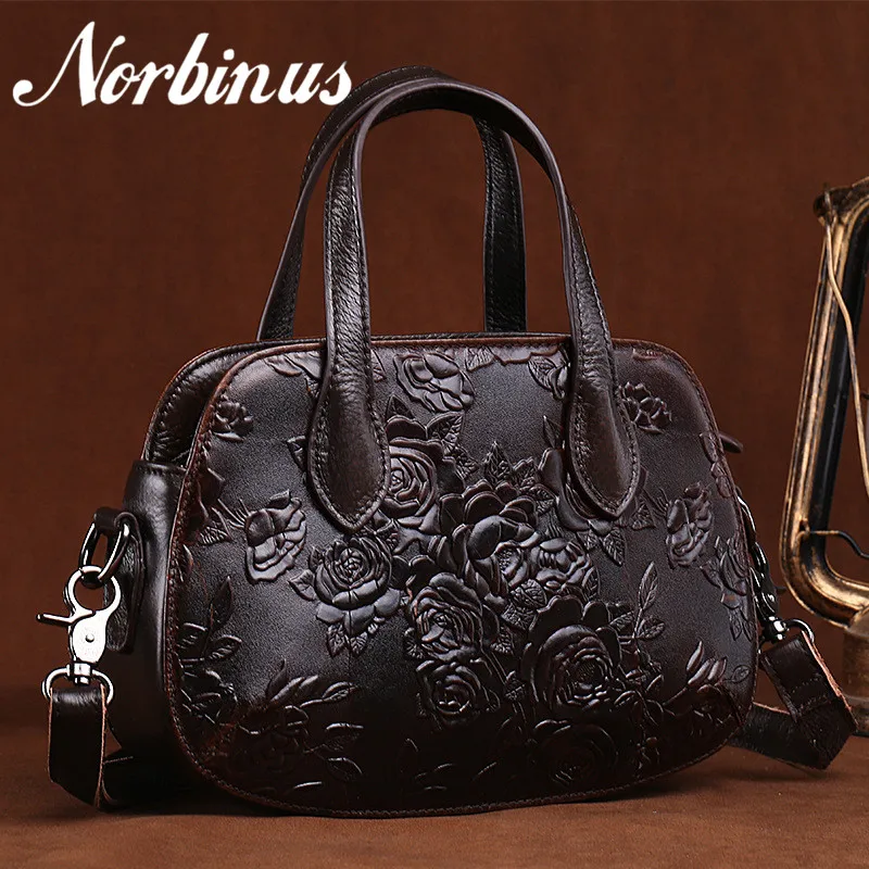 Винтажные дамские сумочки Norbinus из натуральной кожи, тисненый саквояж на плечо, роскошный брендовый маленький тоут для женщин