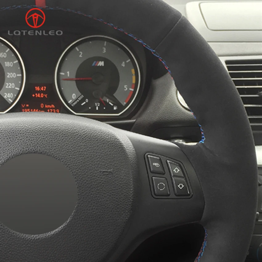 Черный замшевый чехол LQTENLEO для руля автомобиля ручной работы для BMW M Sport 3 серии E91 320i 325i 330i 335i M3 E90 E92 E93