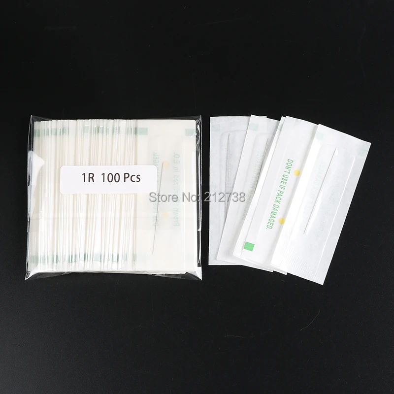 Одноразовые стерилизованные Профессиональные иглы для тату 1RL Для аппарат в виде ручки для татуажа бровей, набор для перманентного макияжа, 100 шт. игл PMU 1R