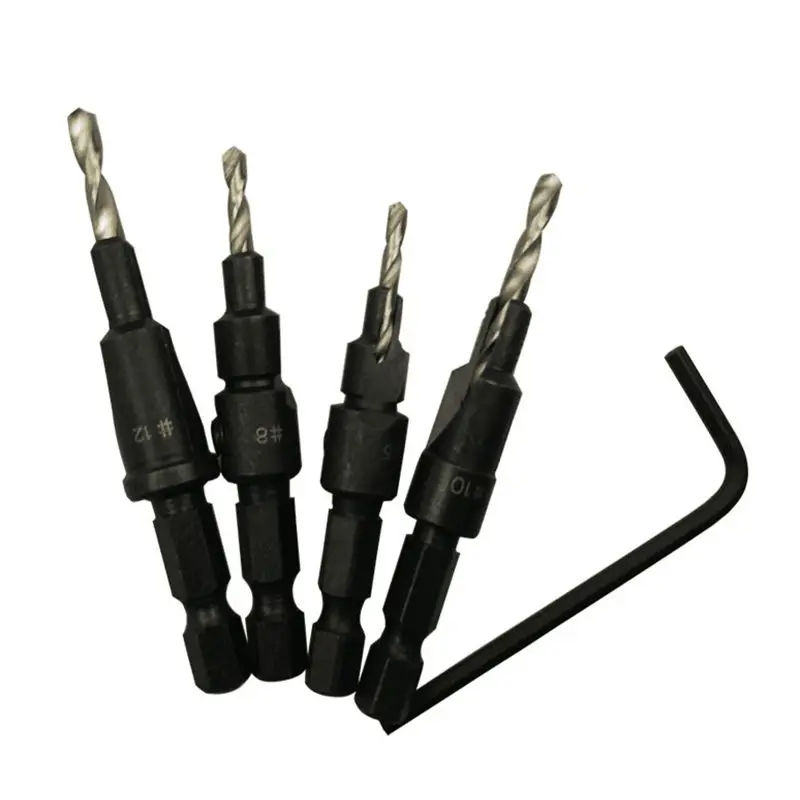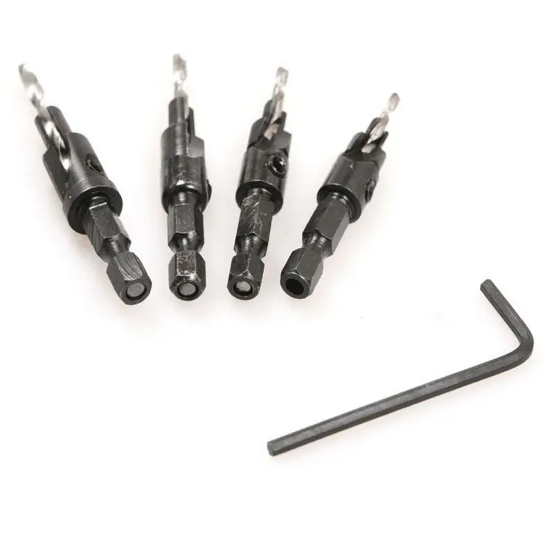 Набор из четырех частей включает в себя биты для сверления пилотных отверстий для винтовых размеров #6,#8,#10 и #12Специальный дизайн стальной счетчик втулки столешницы или счетчик Бора пилотное отверстиеРегулируемая глубина рукава с шестигранным гаечным ключомСтандартный шестигранный хвостовик совместим с быстрой заменойСверло и столешница для деревянных винтов, не меняя БитыДлина сверления может быть отрегулирована для различных винтов длины просто путем ослабления и затягивания установочного винтаХарактеристики:Цвет: как показано на фотографияхМатериал: сверлильный 4241 HSSЧерная фаска Материал корпуса: сталь 45Размеры:6 #2,38 мм (0,0937 дюйма) x 55 мм (Д)8 #2,78 мм (0,1094 дюйма) x 60 мм (Д)10 #3,175 мм (0,125 дюйма) x 63 мм (Д)12 #3,56 мм (0,14 дюйма) x 65 мм (Д)Хвостовик: 1/4 шестигранный хвостовик
