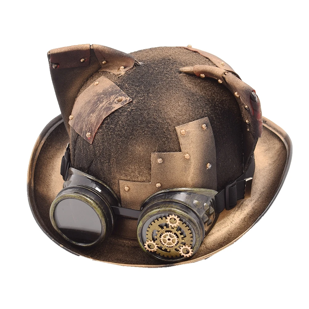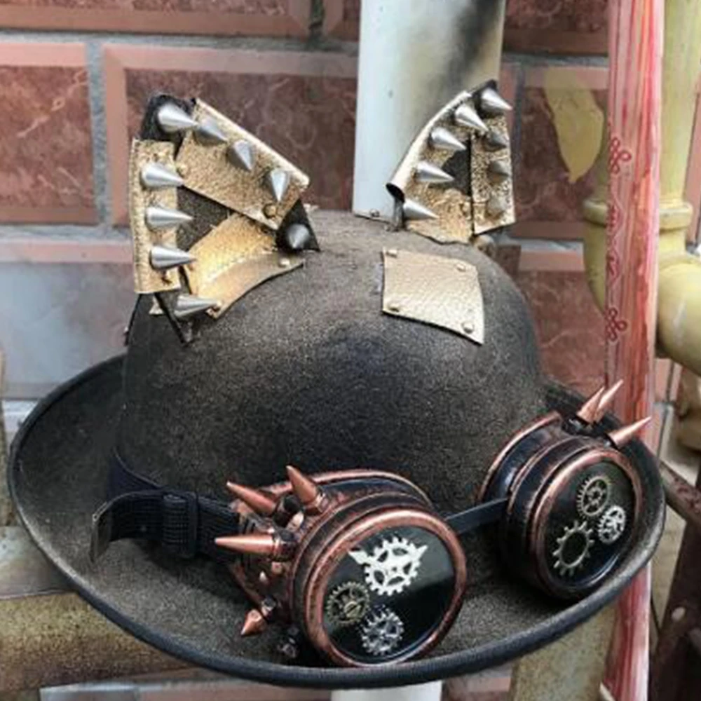Ретро Панк Лолита Стиль Женщины Кот Ухо Панк Шапка Патч шестерня Очки Украшение мягкая фетровая шляпа головной убор