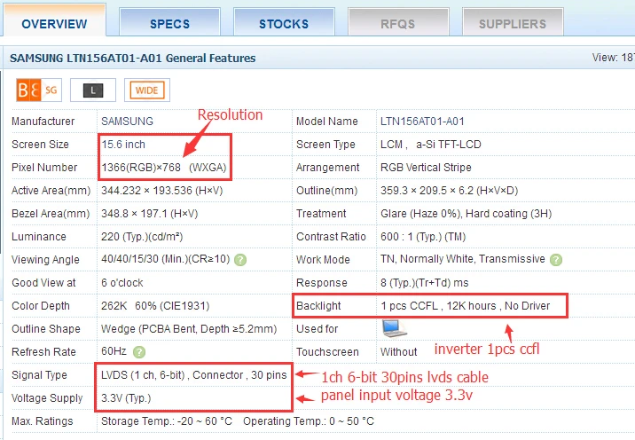 Шаг 1: Найдите разрешение вашей ЖК-модели (вы можете проверить разрешение по этой ссылке:http://www.panelook.com/index.php)